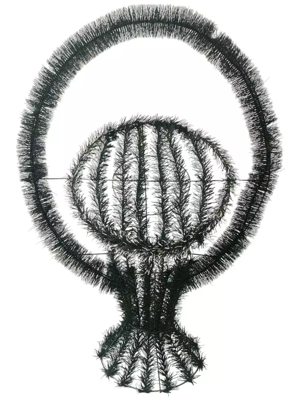 Косий кошик зі штучної хвої, по краю вази зашит відрізками хвої, з