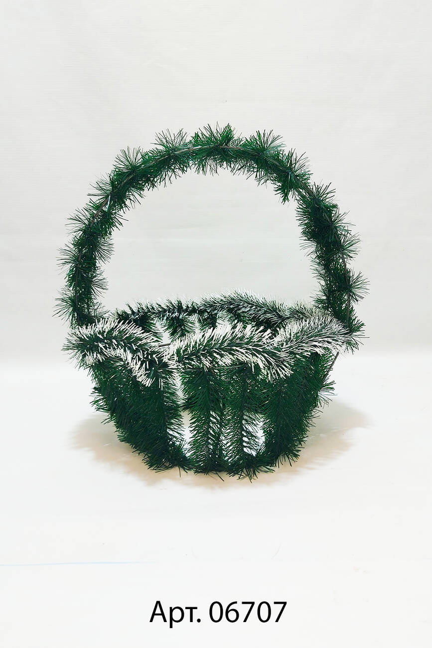 Кошик зі штучної хвої у вигляді ладді з двокольрової хвої.