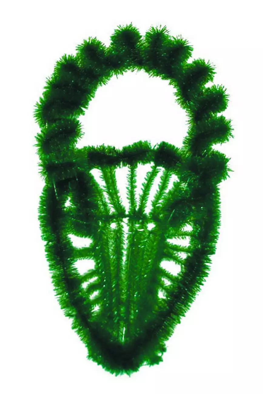 Кошик зі штучної хвої оздоблений йоршом який з'єднаний відрізками