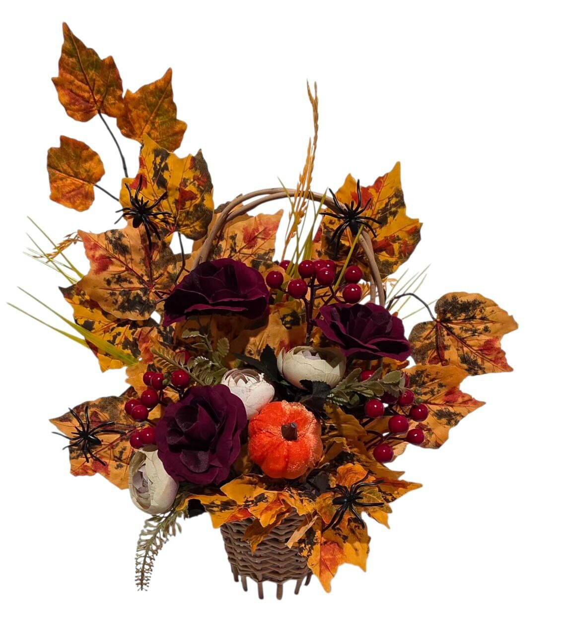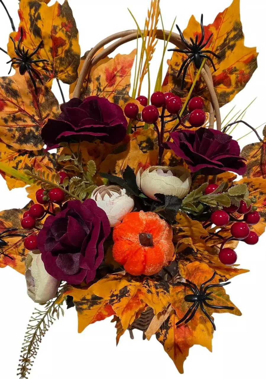 Кошик "Осінь" у кошику з лози, прикрашений головами троянди,
