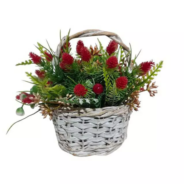 Кошик плетений "Малюк" прикрашений гілочками аспарагуса, папороттю,