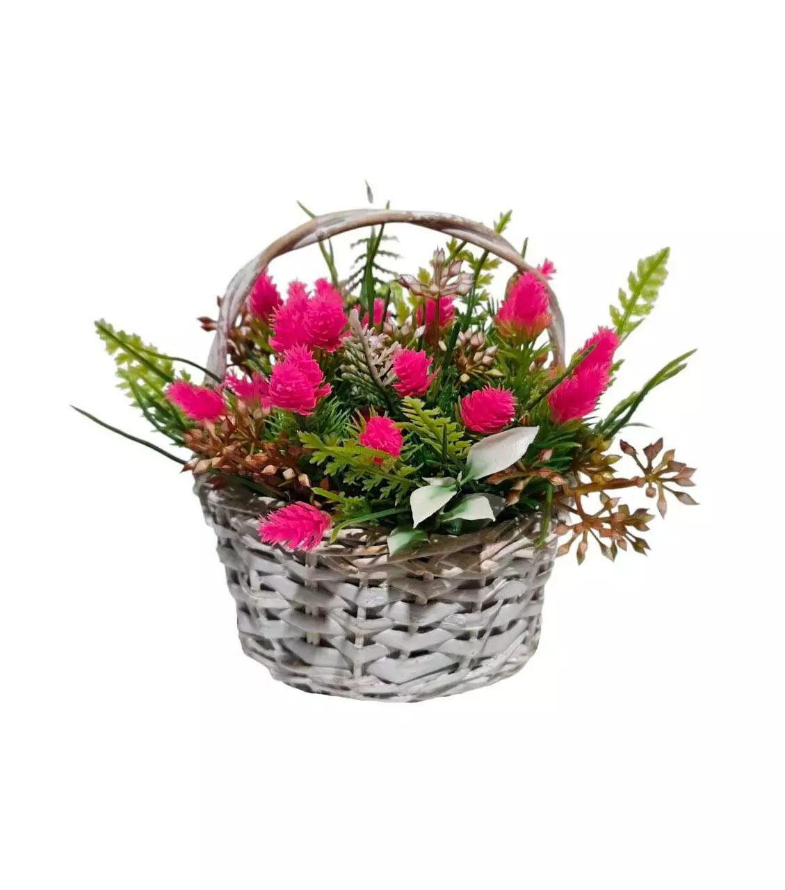 Кошик плетений "Малюк" прикрашений гілочками аспарагуса, папороттю,