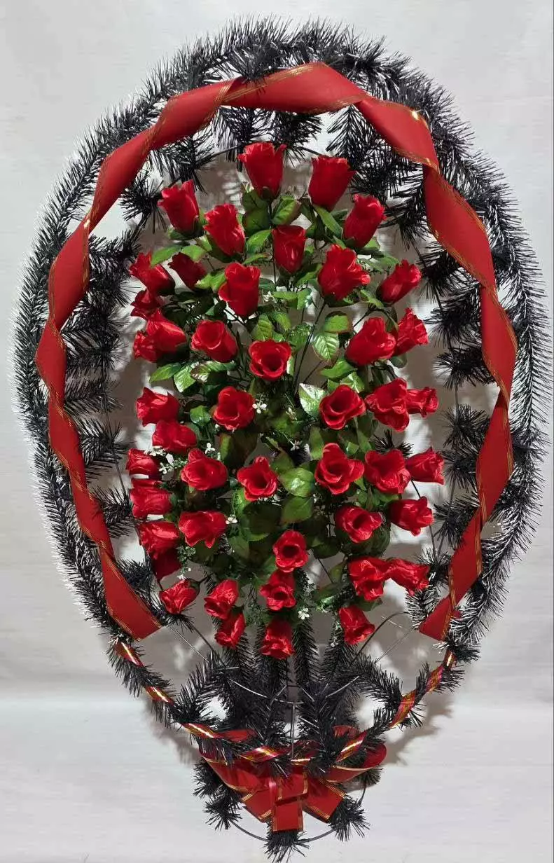 Ритуальний кошик зі штучної хвої, розміром 112*70*34 см. Кошик