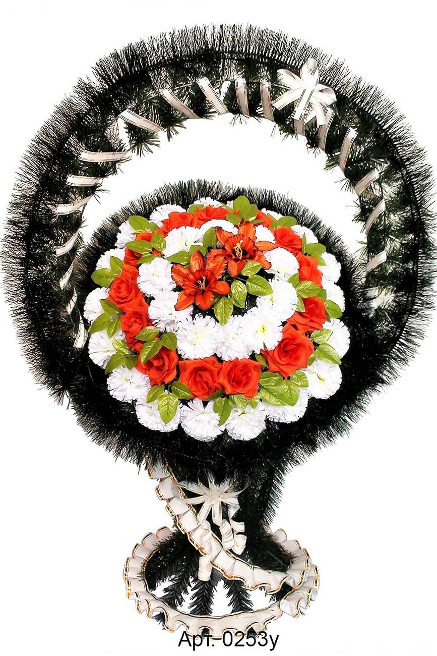 прикрашений головами нарцису, троянди, гвоздики та ритуальною