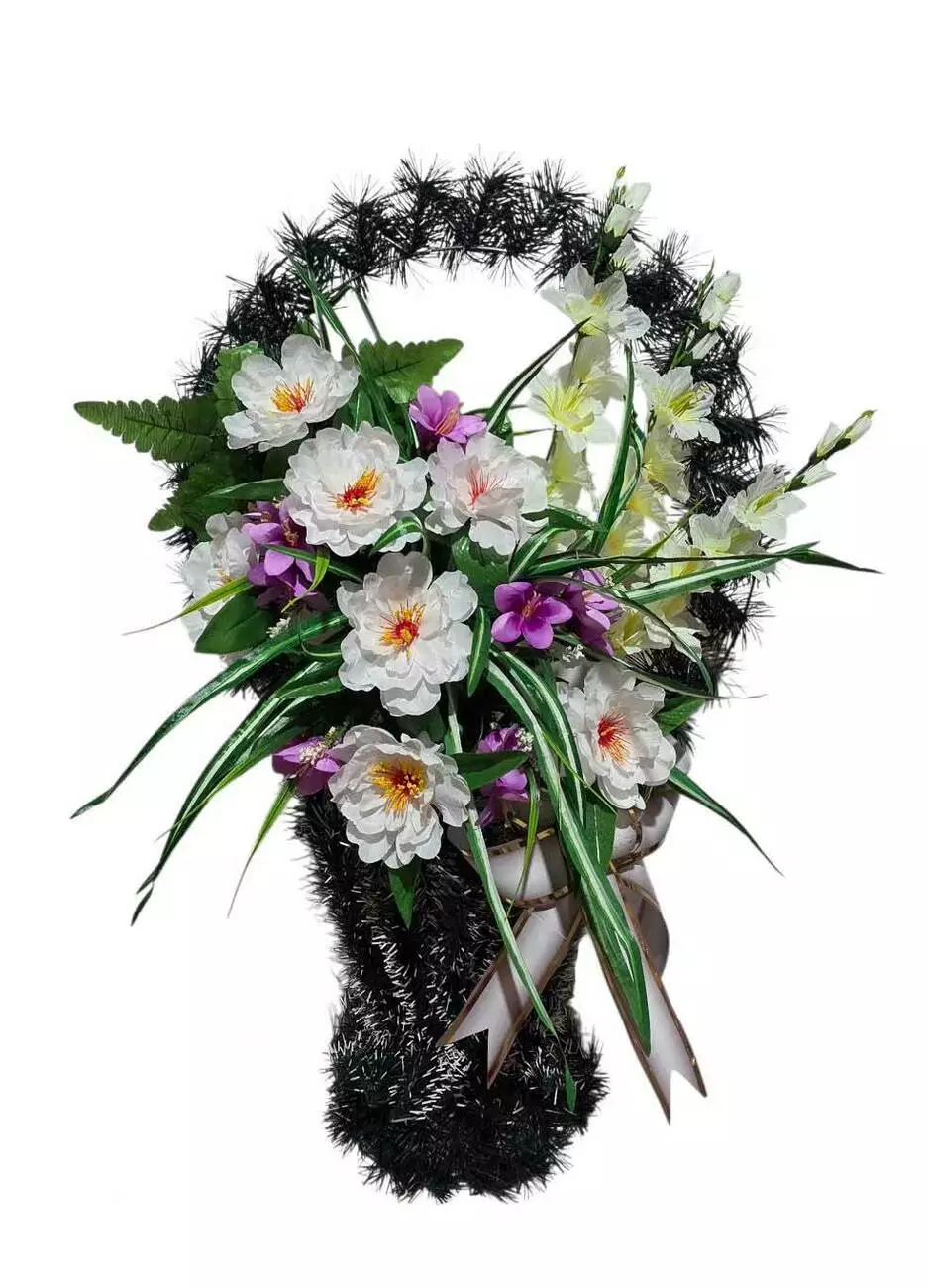 півонії, кущем хлорофітума, осокою, листям папороті та ритуальною