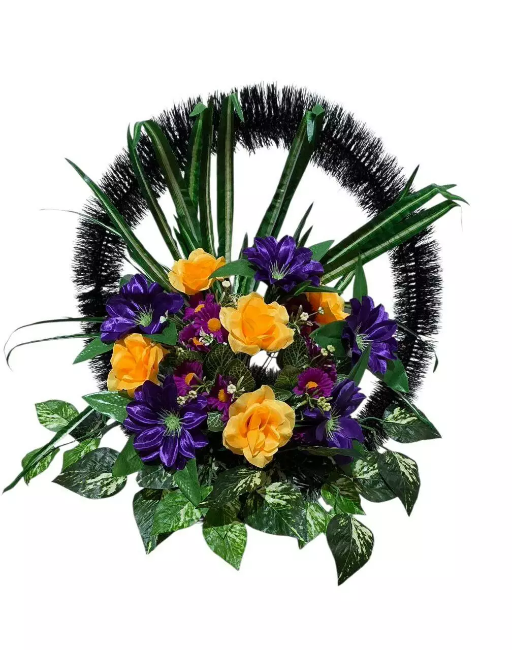 Ритуальний кошик зі штучної хвої, розміром 69*63*40 см. Кошик