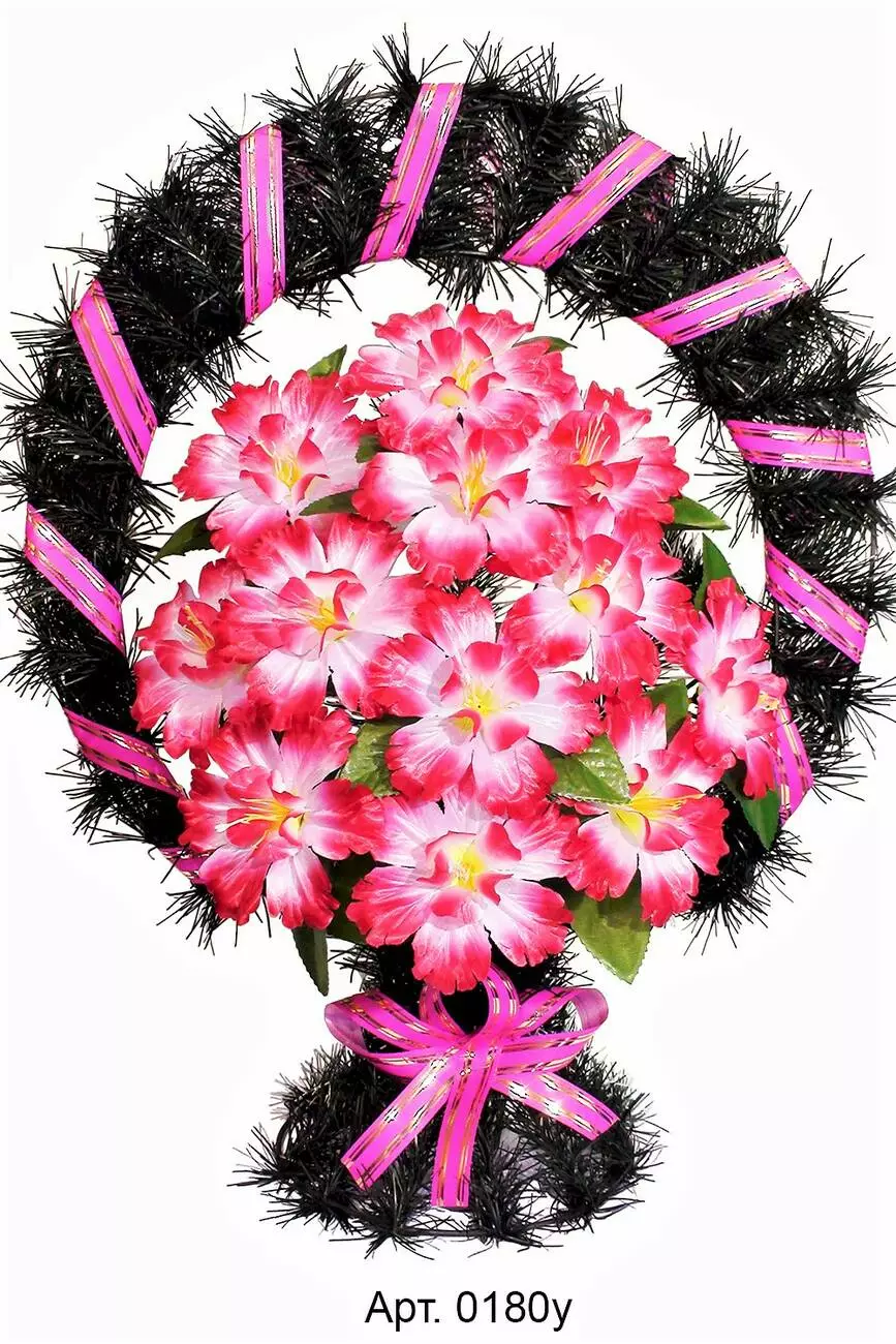 прикрашений букетом мальви та ритуальною стрічкою. Кольорову гаму