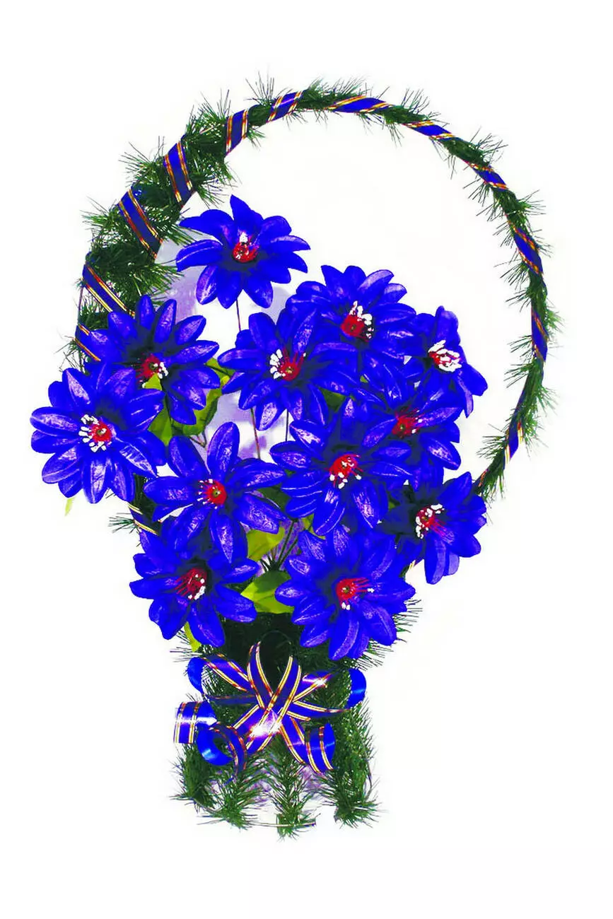 прикрашений головами крокусу та ритуальною стрічкою. Кольорову гаму