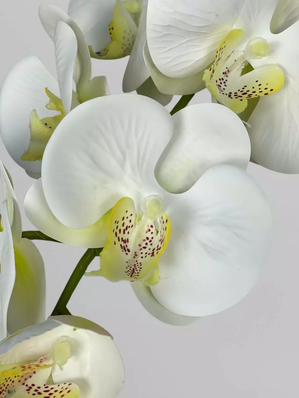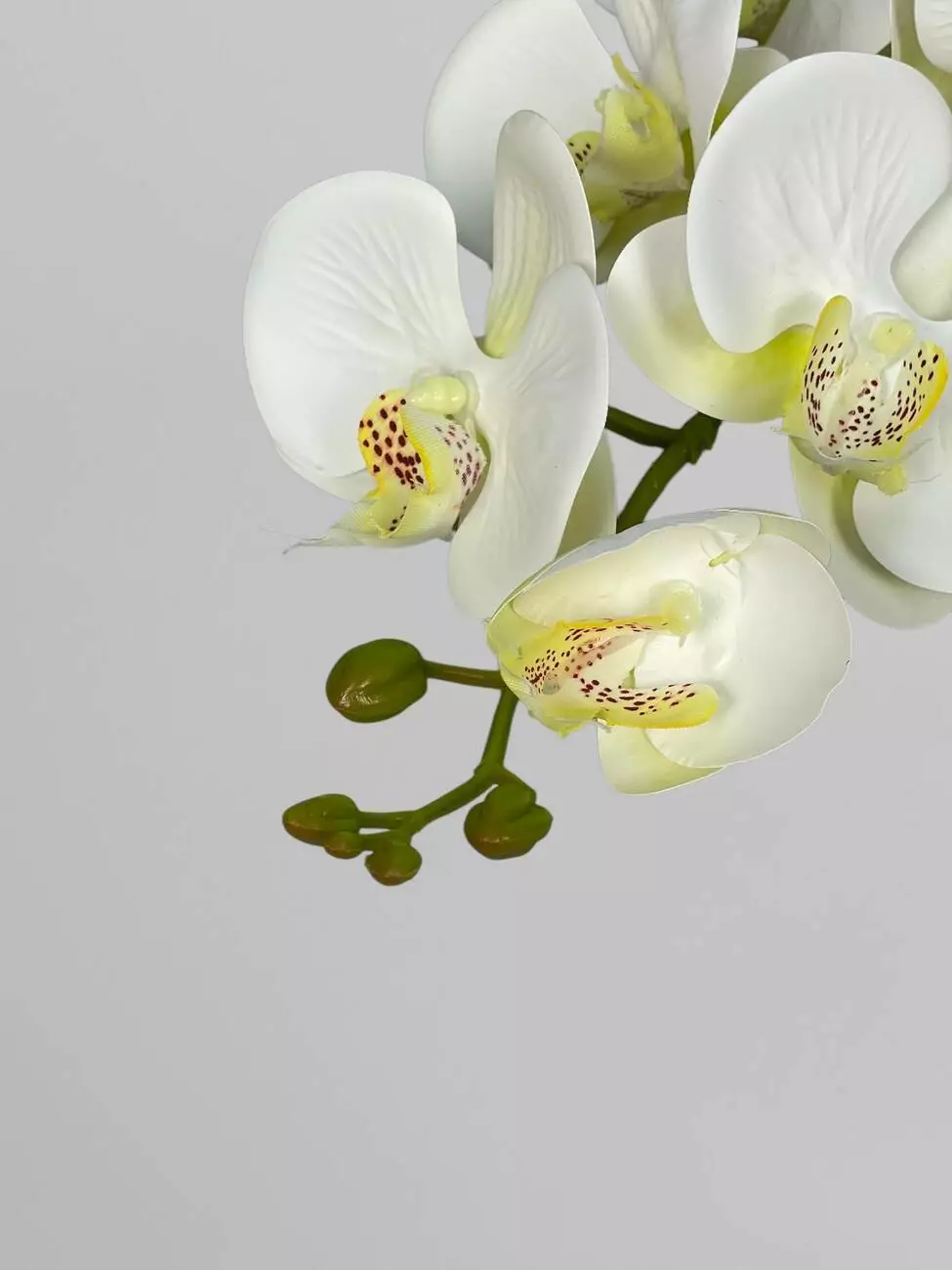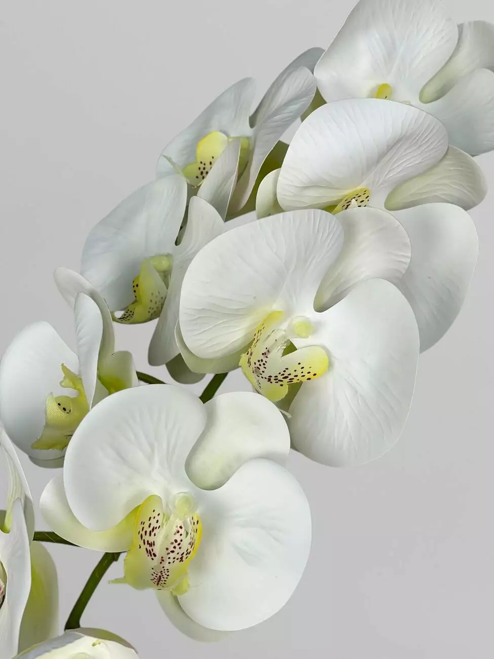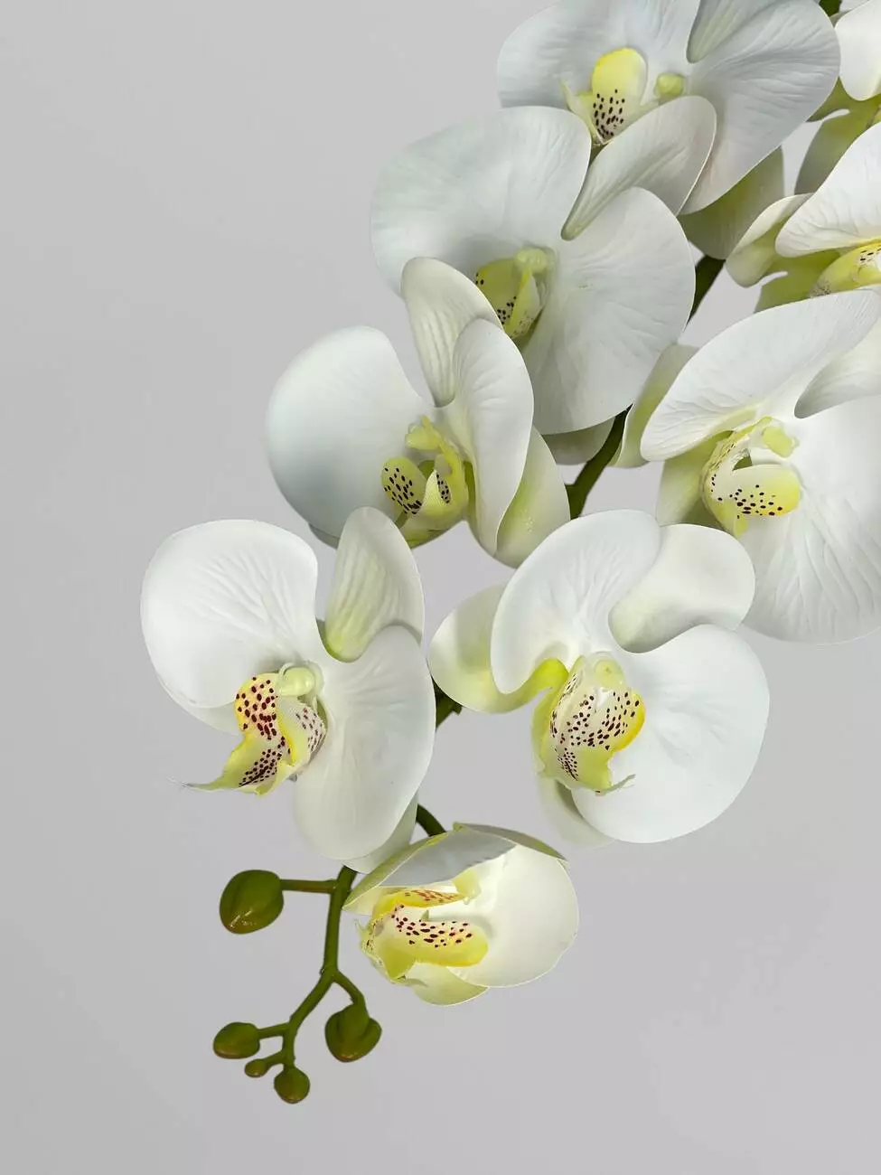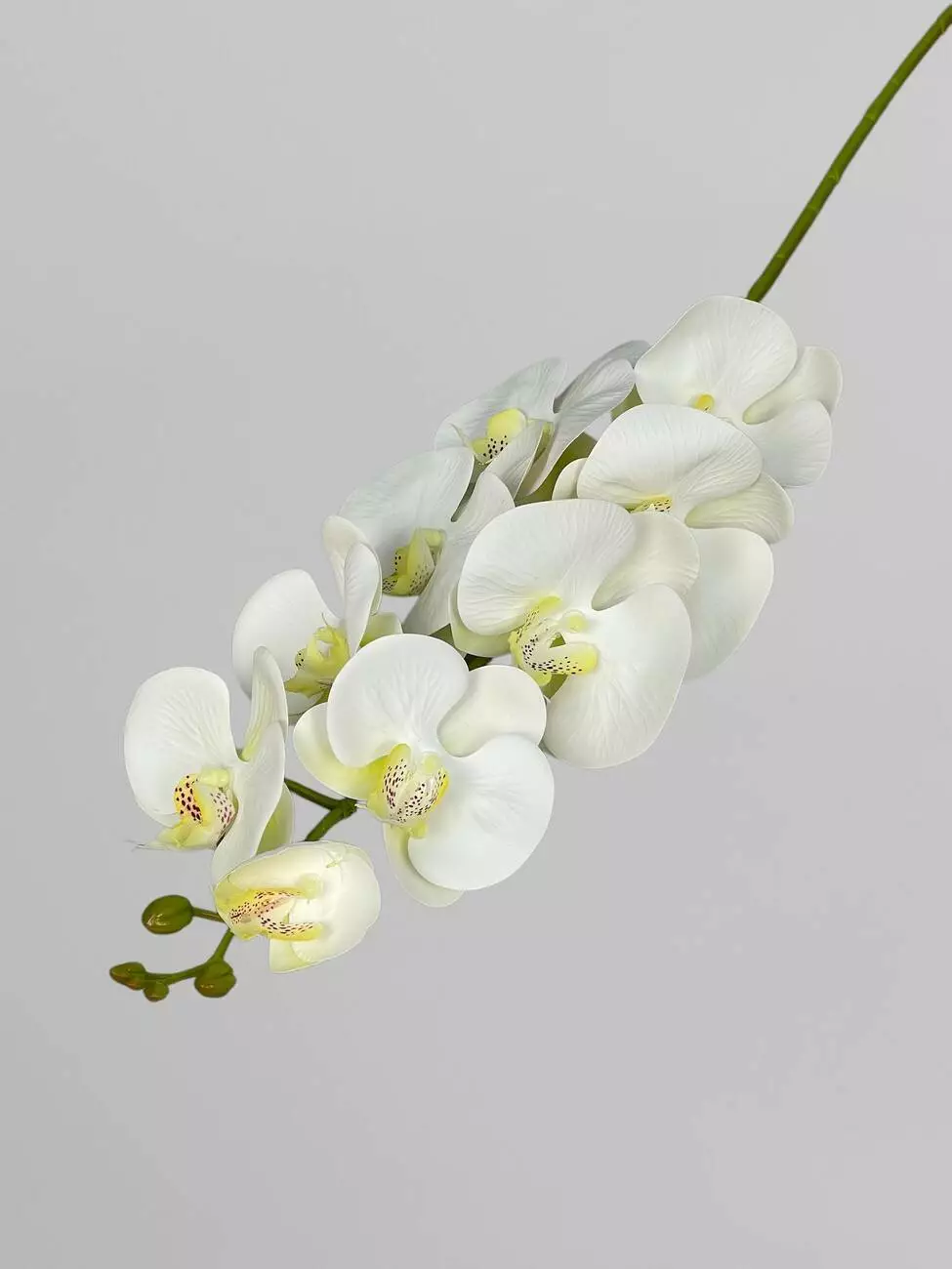 Квітка орхідеї штучна на гілці з 9 суцвіть, білий з жовтою серединкою, 95 см