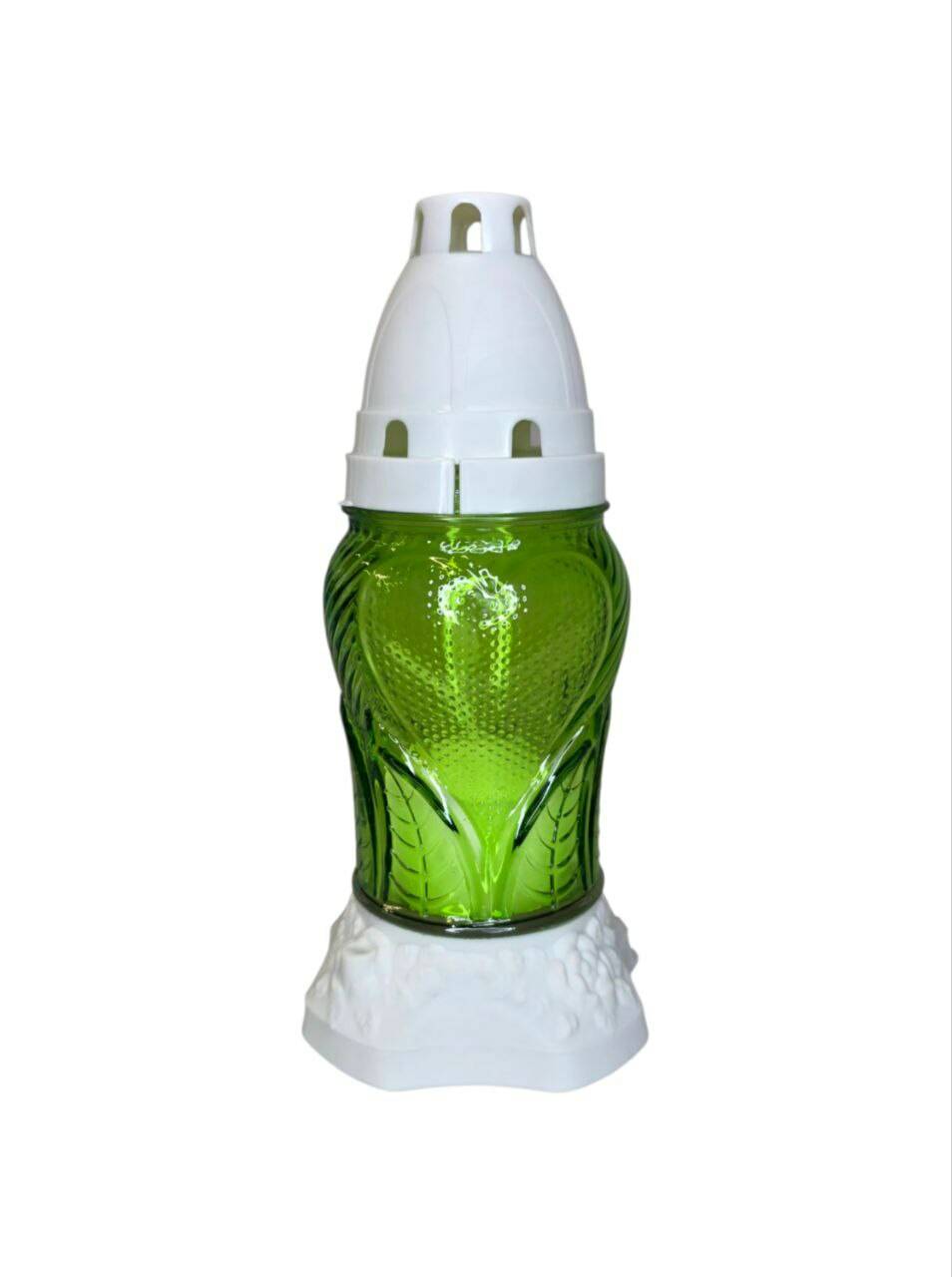 Лампадка виготовлена зі скла, з пластиковою кришечкою та
