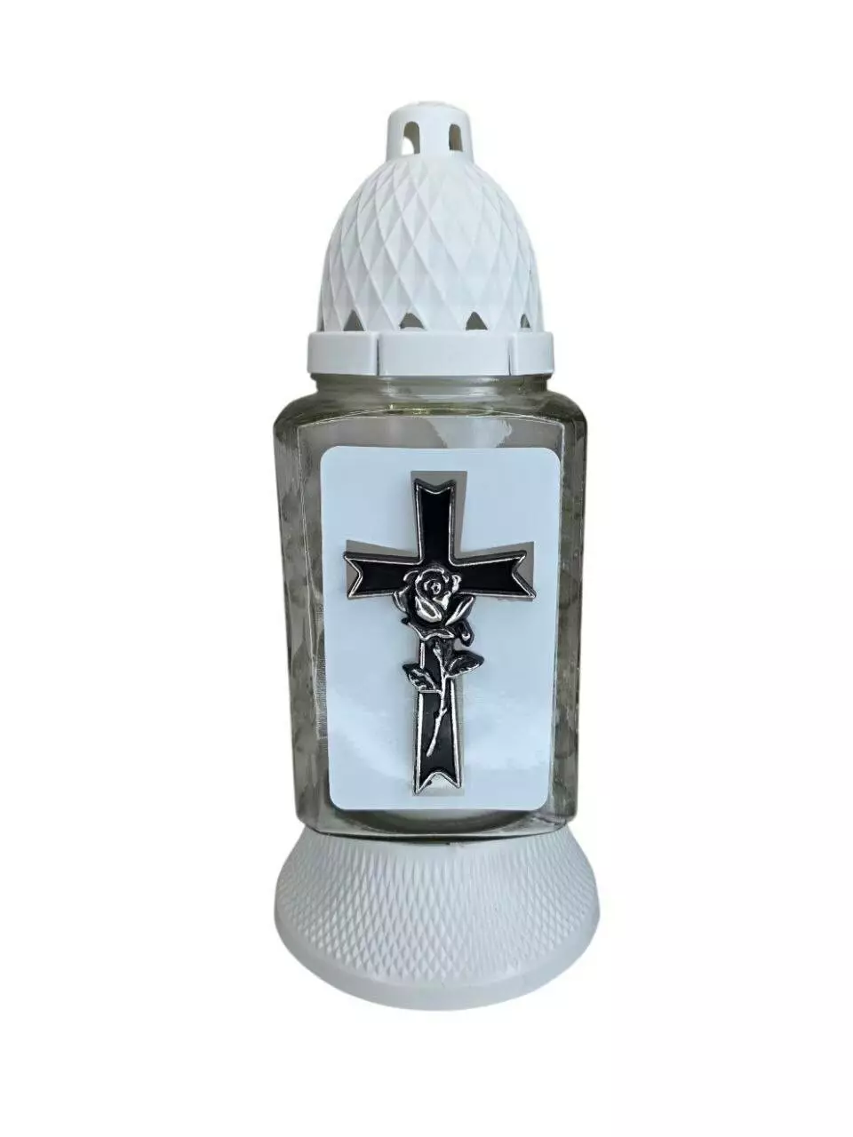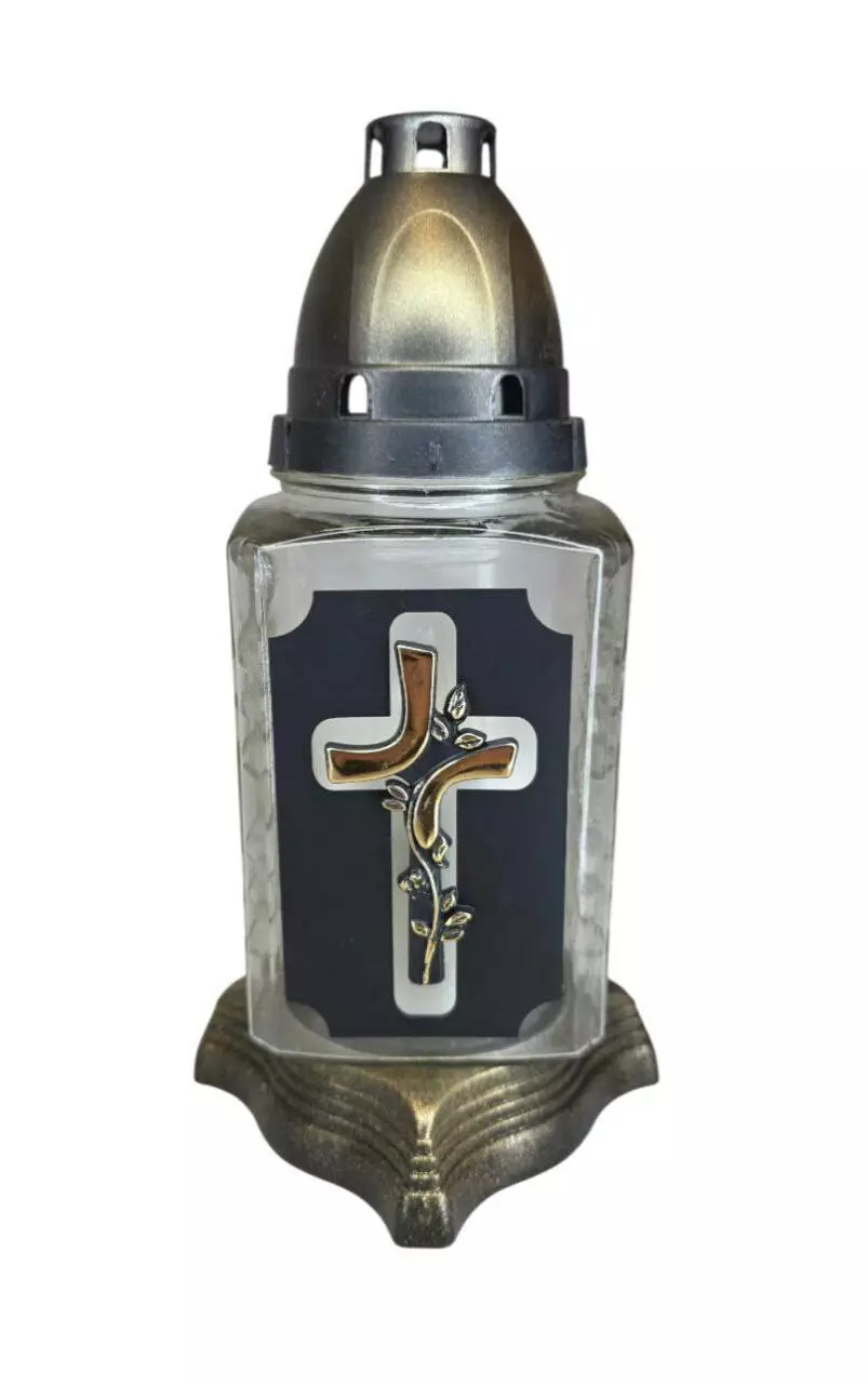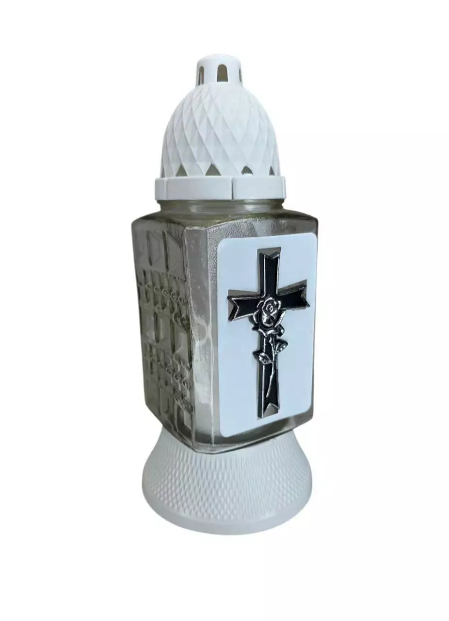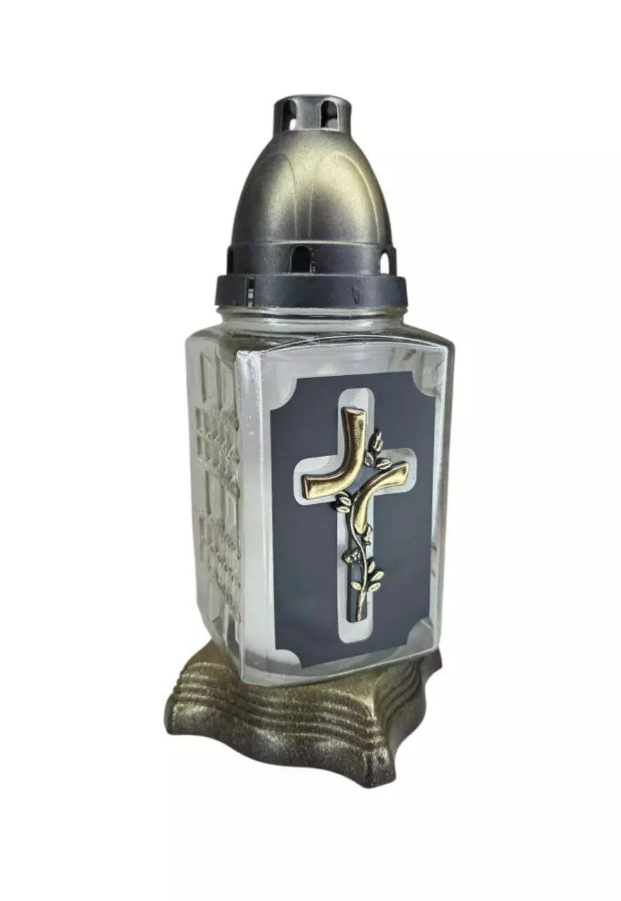 Лампадка хрест виготовлена зі скла, з пластиковою кришечкою та