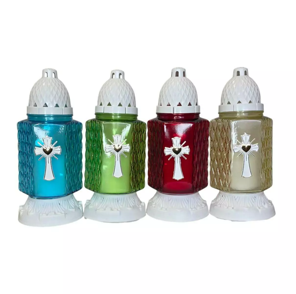 Лампадка ассорті виготовлена зі скла, з пластиковою кришечкою та