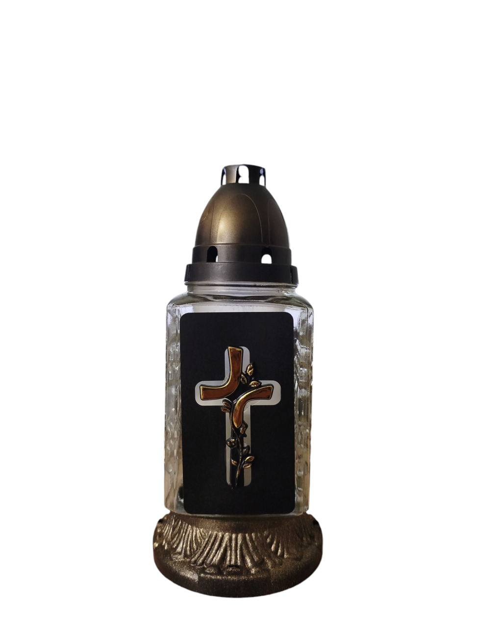 Лампадка хрест виготовлена зі скла, з пластиковою кришечкою та