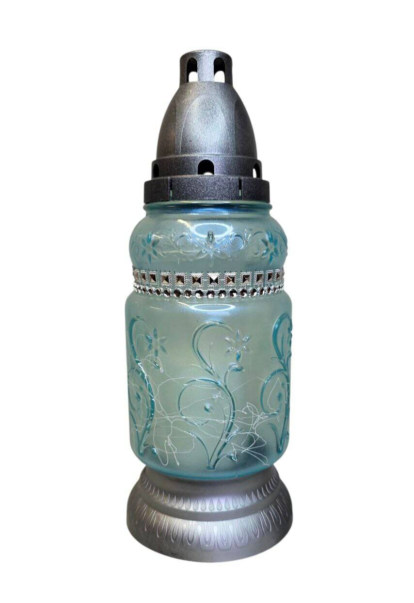 Лампадка виготовлена зі скла, з пластиковою кришечкою та