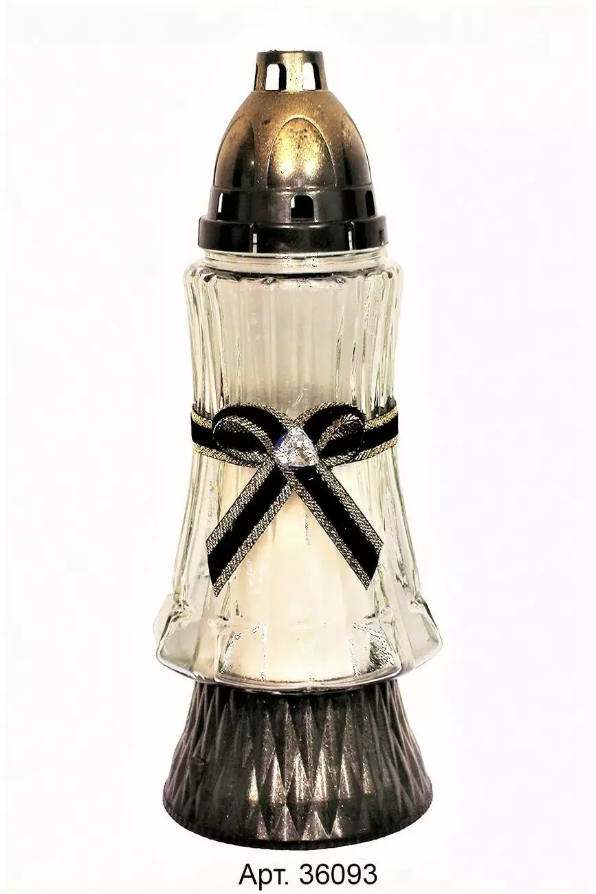 Лампадка виготовлена зі скла, з пластиковою кришечкою та бантом