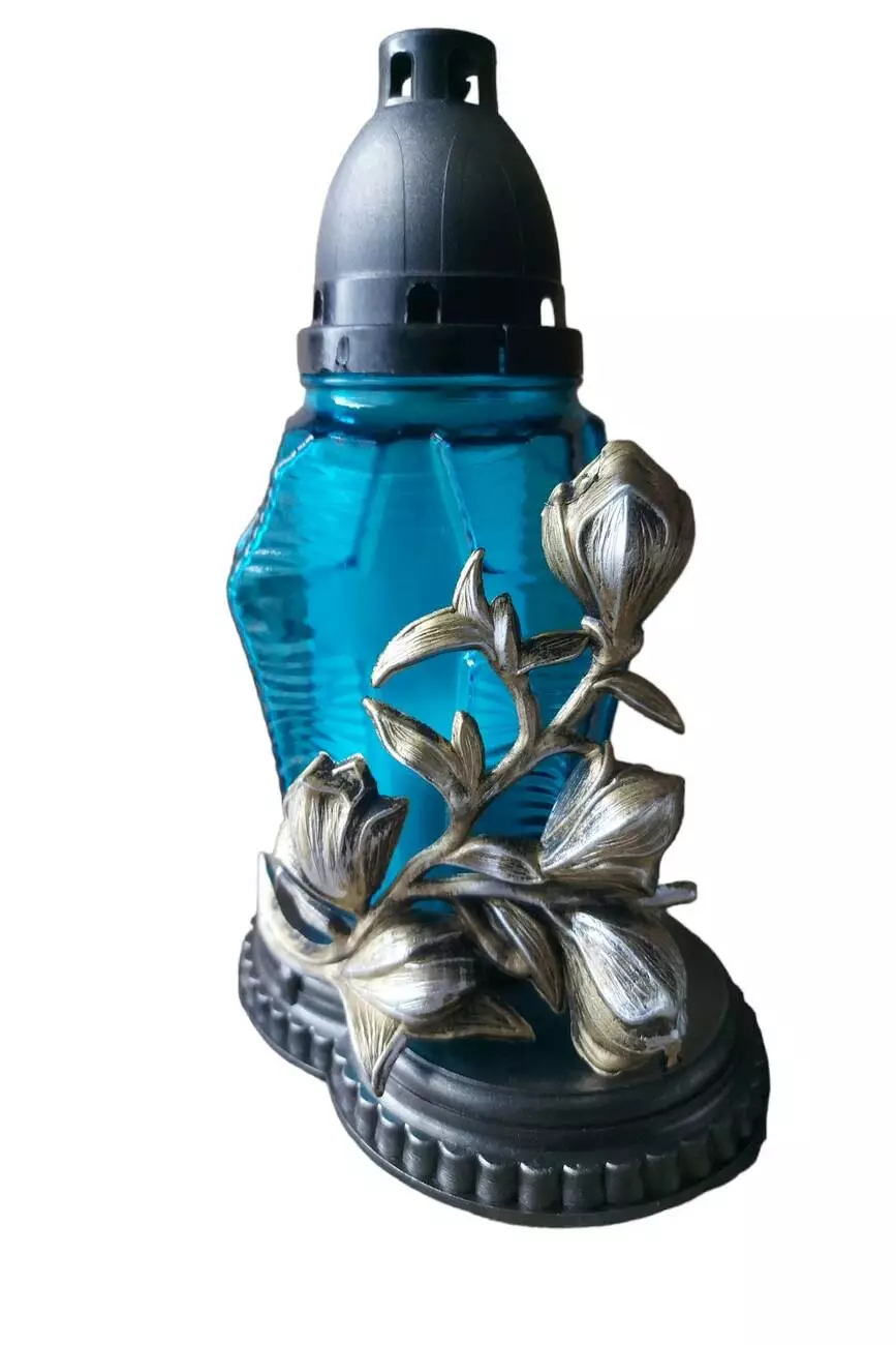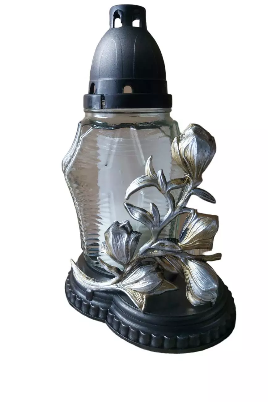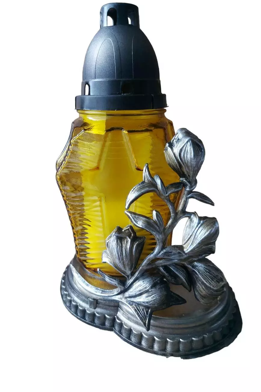 Лампадка виготовлена зі скла, з пластиковою кришечкою та