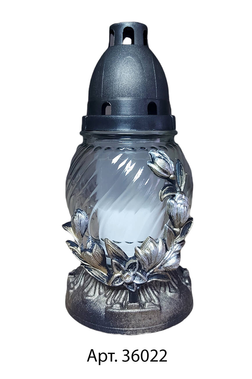 Лампадка виготовлена зі скла, з пластиковою кришечкою та