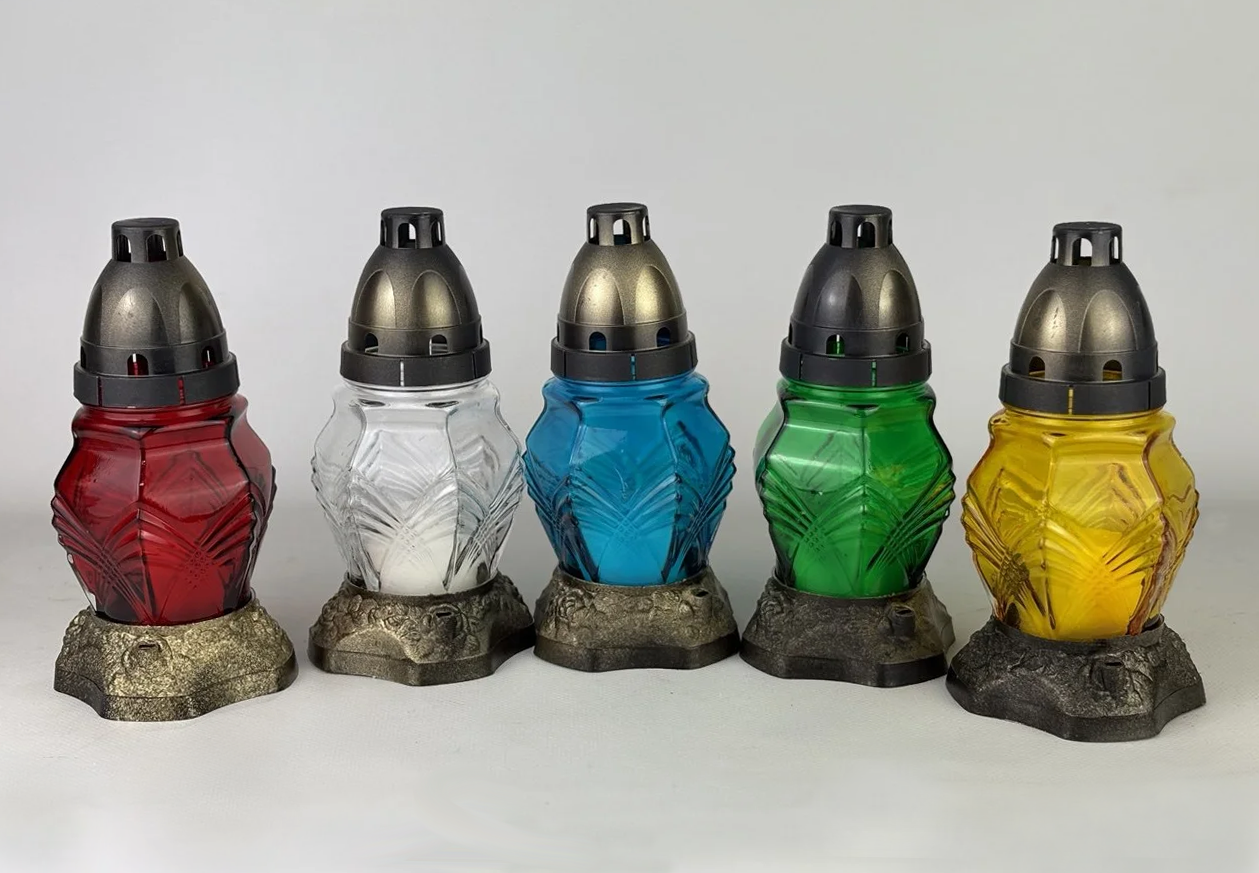 Лампадка виготовлена зі скла, з пластиковою кришечкою та