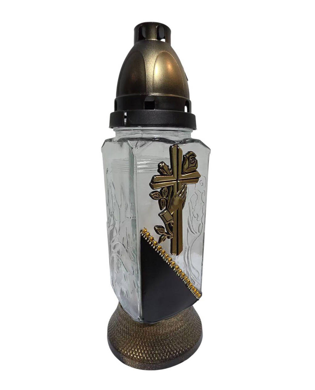 Лампадка хрест виготовлена зі скла, з пластиковою кришечкою та