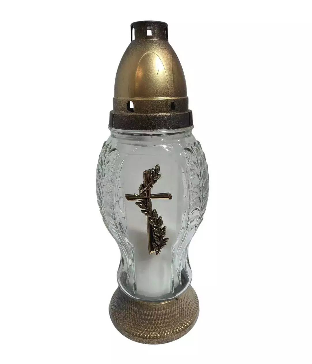 Лампадка виготовлена зі скла, з пластиковою кришечкою та