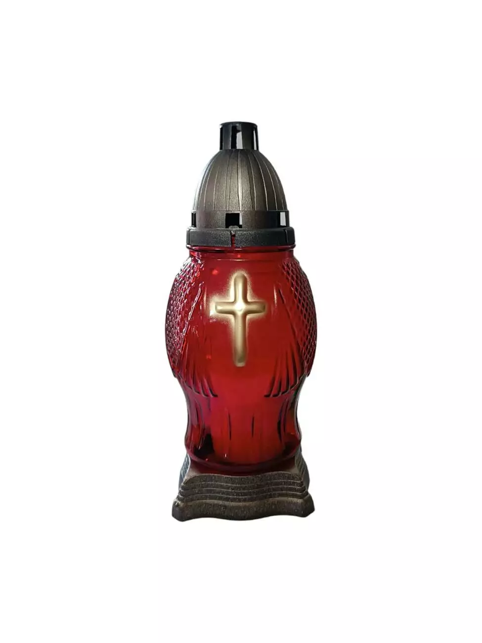 Лампадка хрест новий виготовлена зі скла, з пластиковою кришечкою