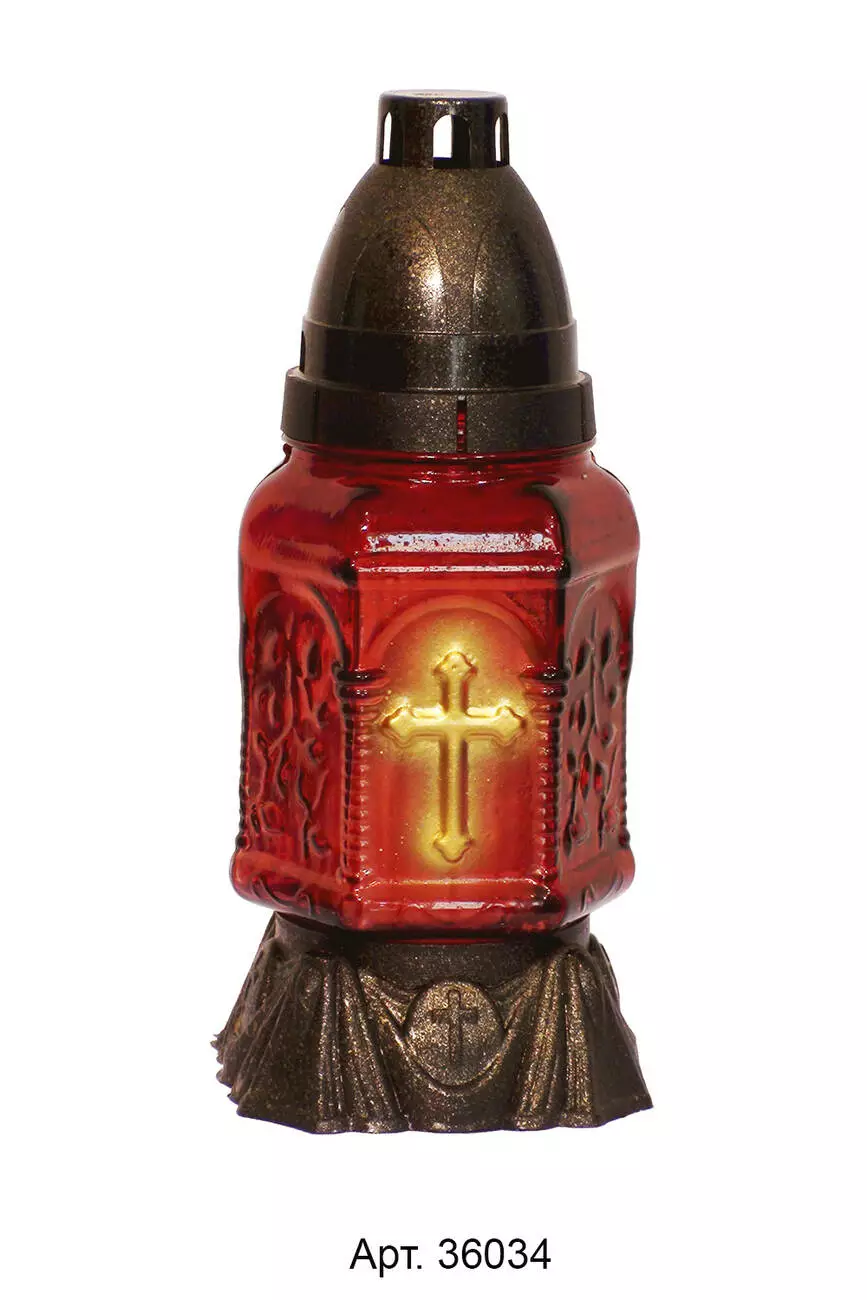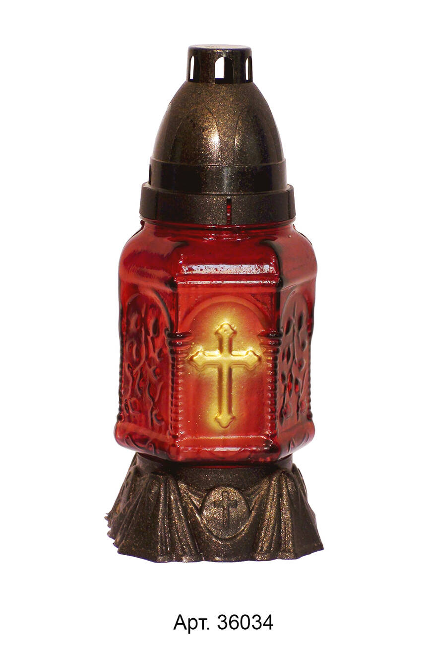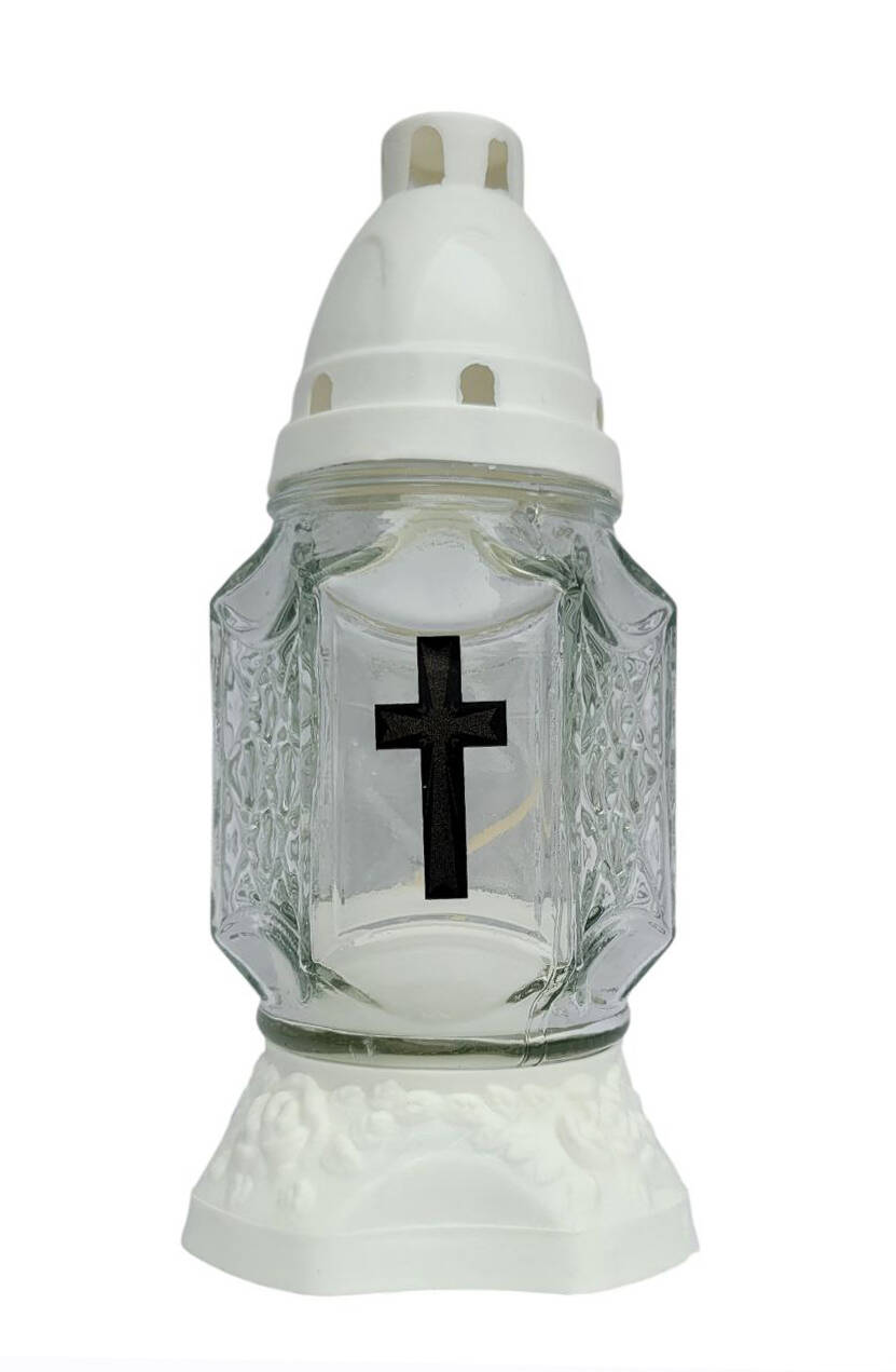 Лампадка виготовлена зі скла, з пластиковою кришечкою та