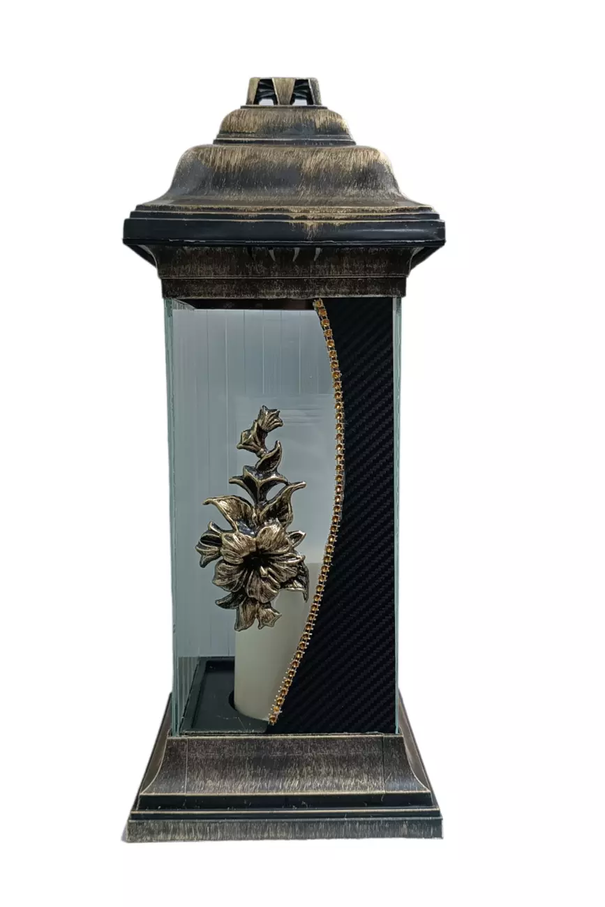 Лампадка капличка виготовлена зі скла з аплікацієй троянди, з