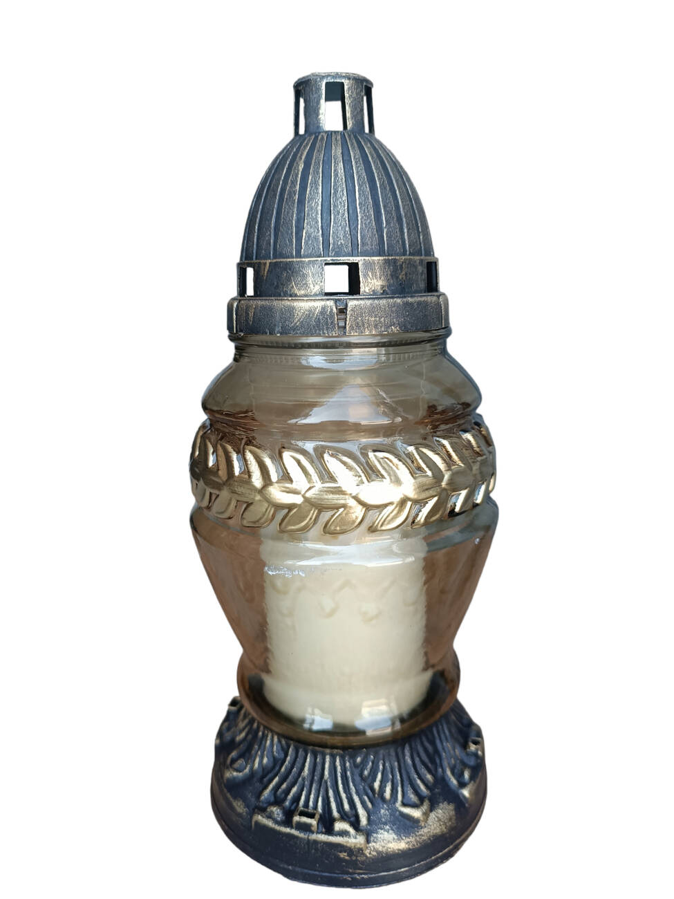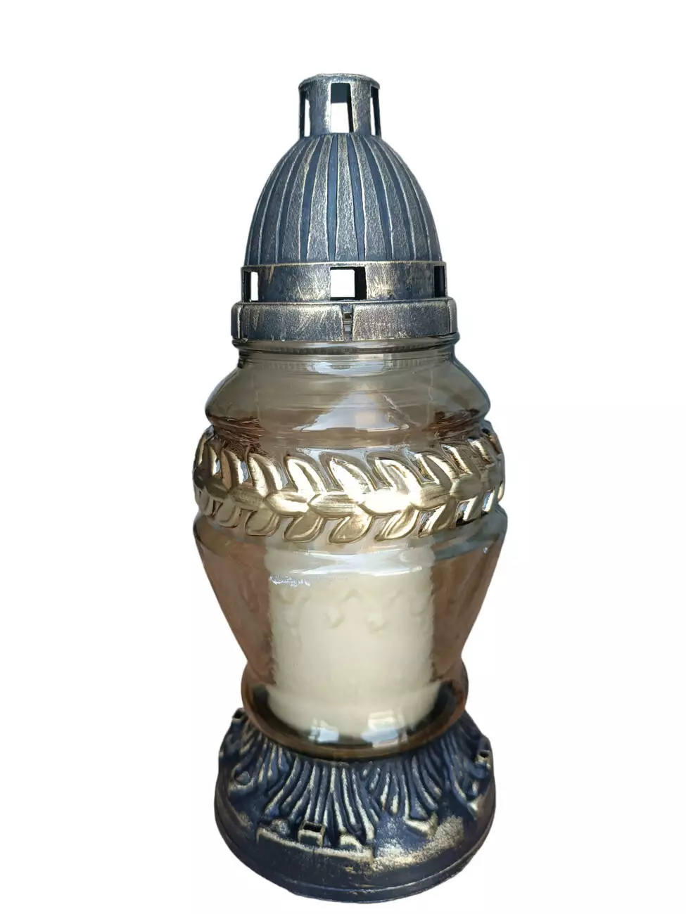 Лампадка виготовлена зі скла, з пластиковою кришечкою та