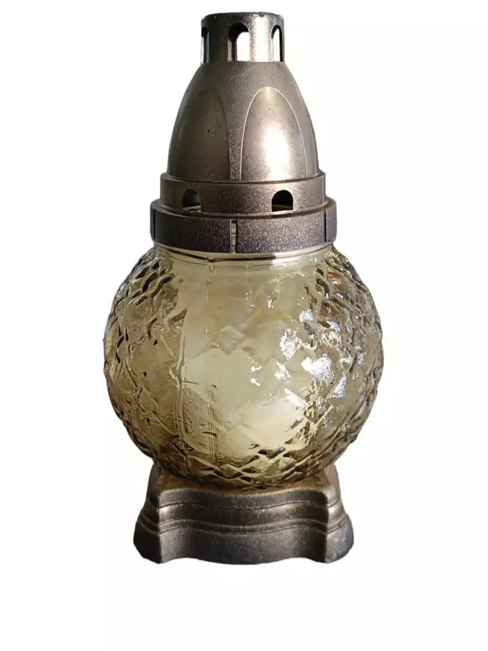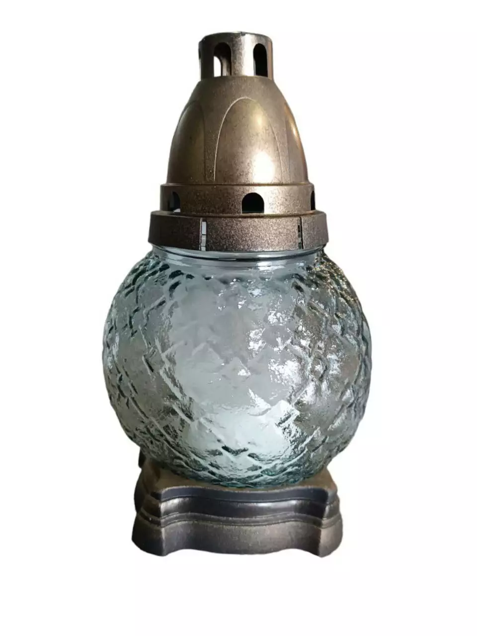 Лампадка виготовлена зі скла, з пластиковою кришечкою та