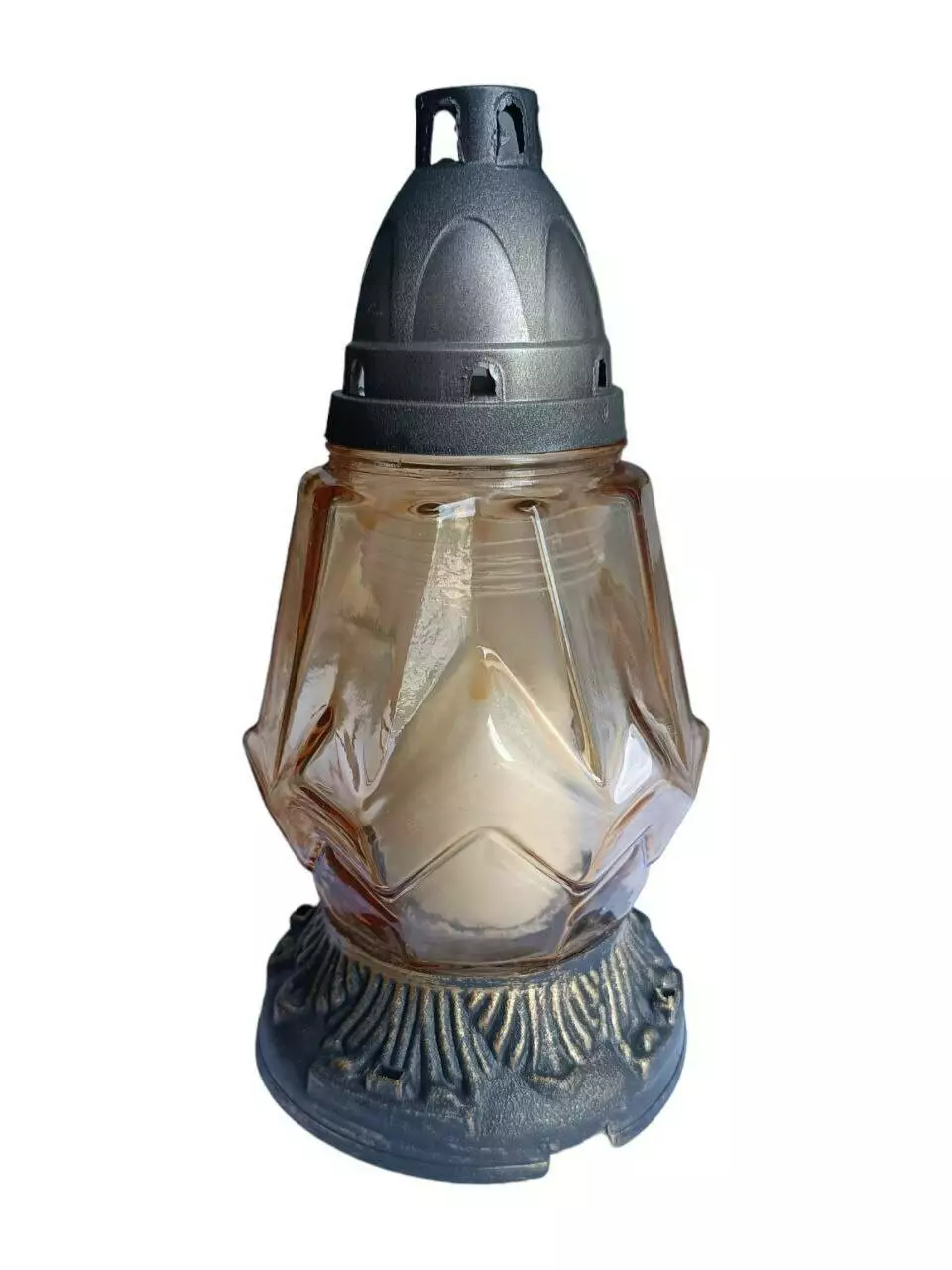 Лампадка виготовлена зі скла, з пластиковою кришечкою та