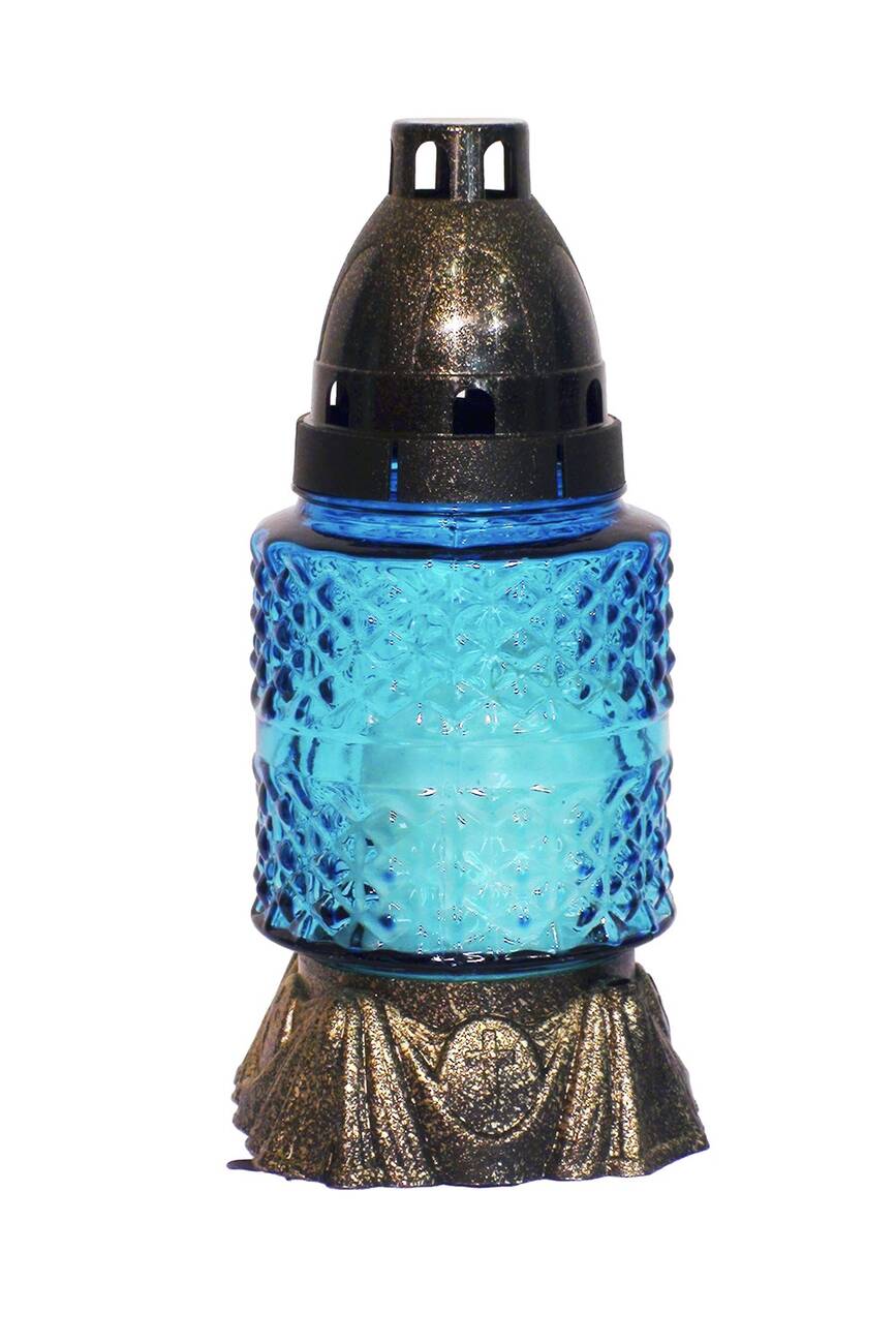 Лампадка виготовлена зі скла, з пластиковою кришечкою та
