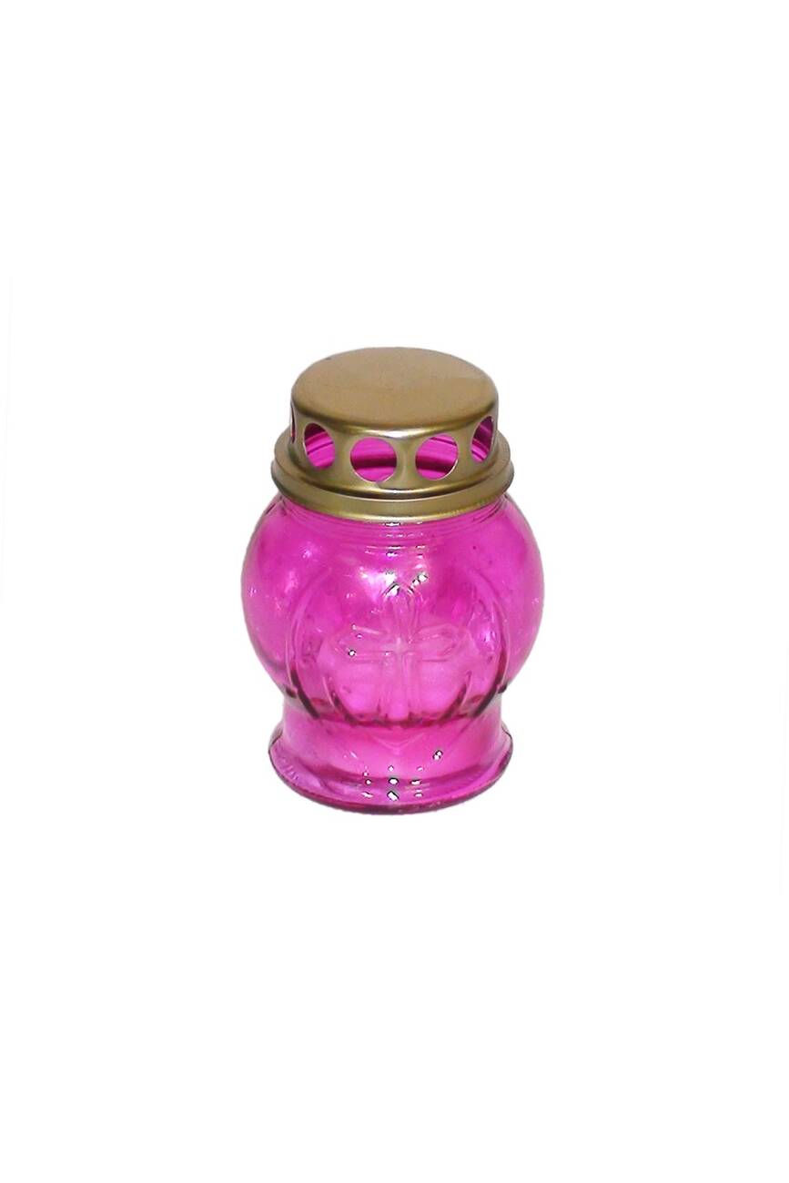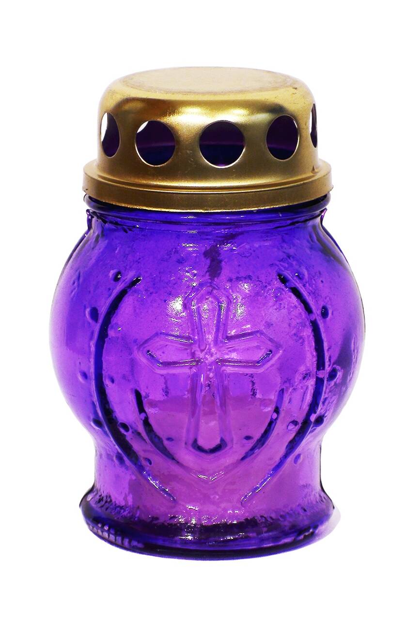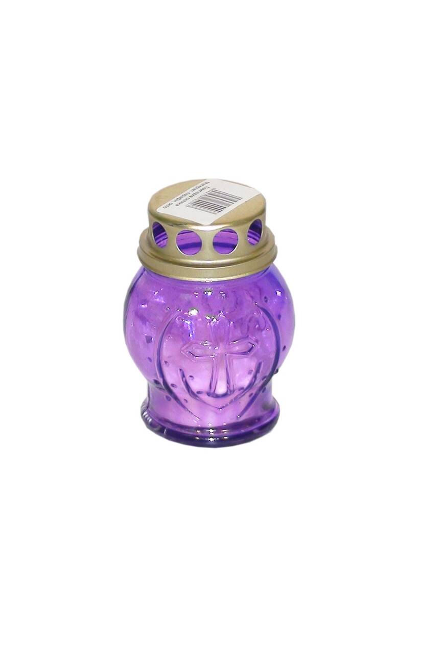 Лампадка виготовлена зі скла з металевою кришкою. Висота 95 мм, час