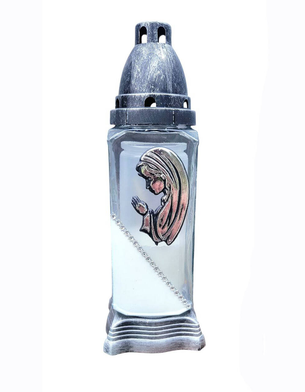 Лампадка виготовлена зі скла, з пластиковою кришечкою та