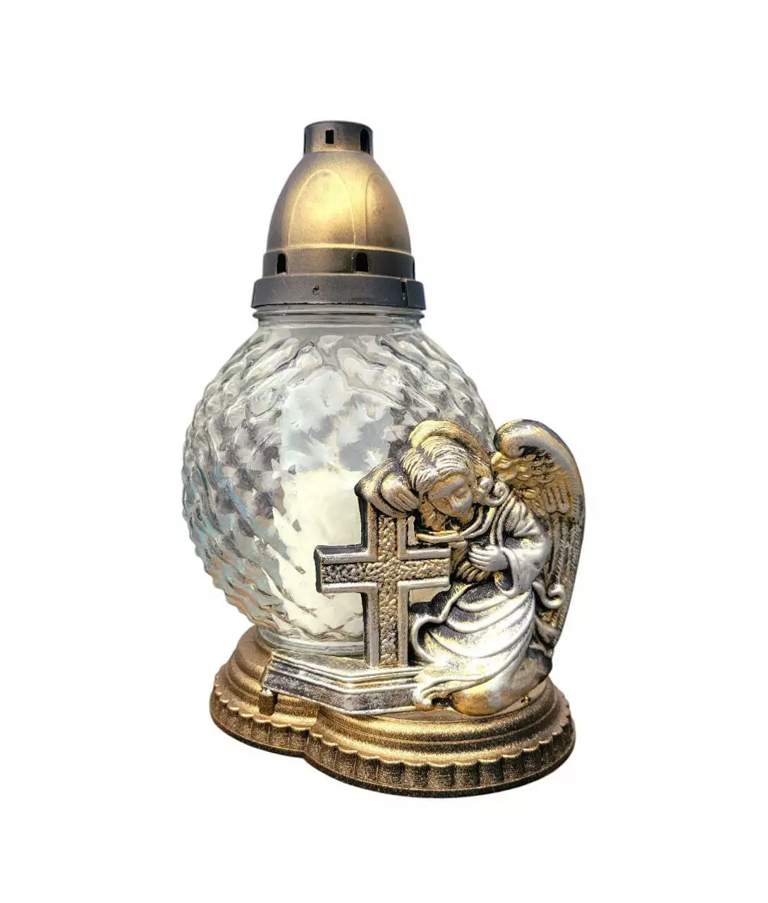 Лампадка молитва янгол виготовлена зі скла, з пластиковою кришечкою