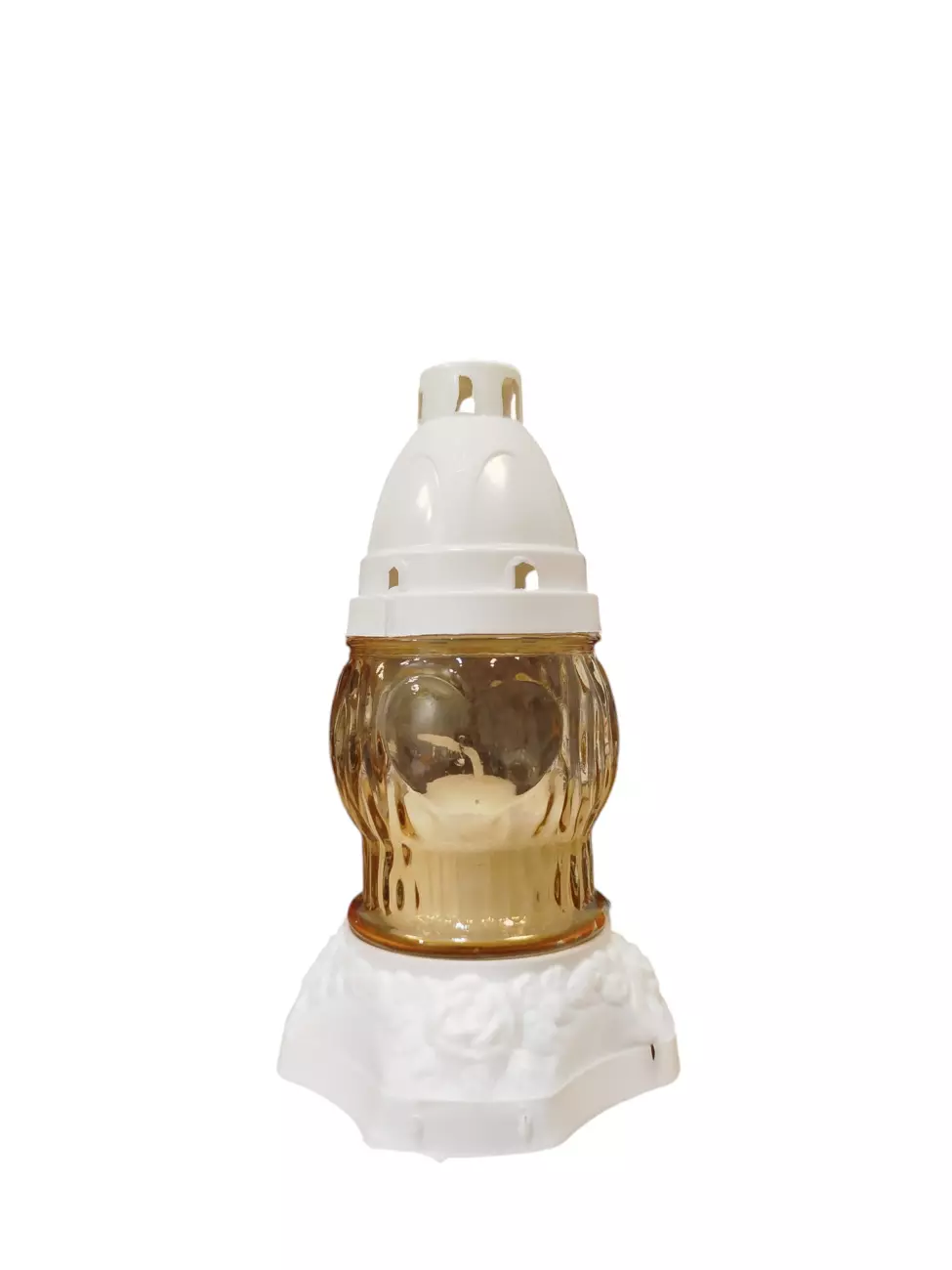 Лампадка виготовлена зі скла, з пластиковою кришечкою та