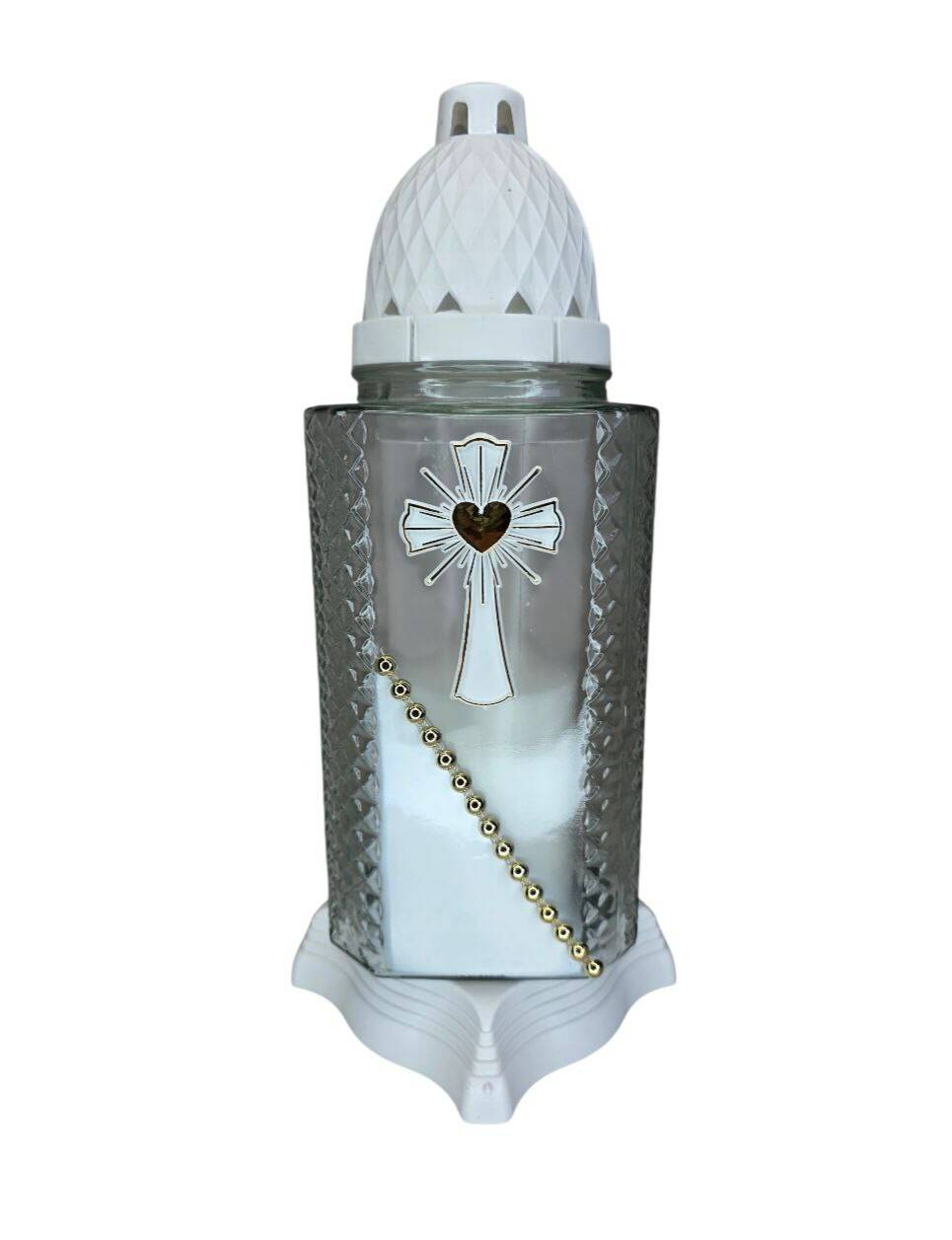 Лампадка полоса хрест виготовлена зі скла, з пластиковою кришечкою