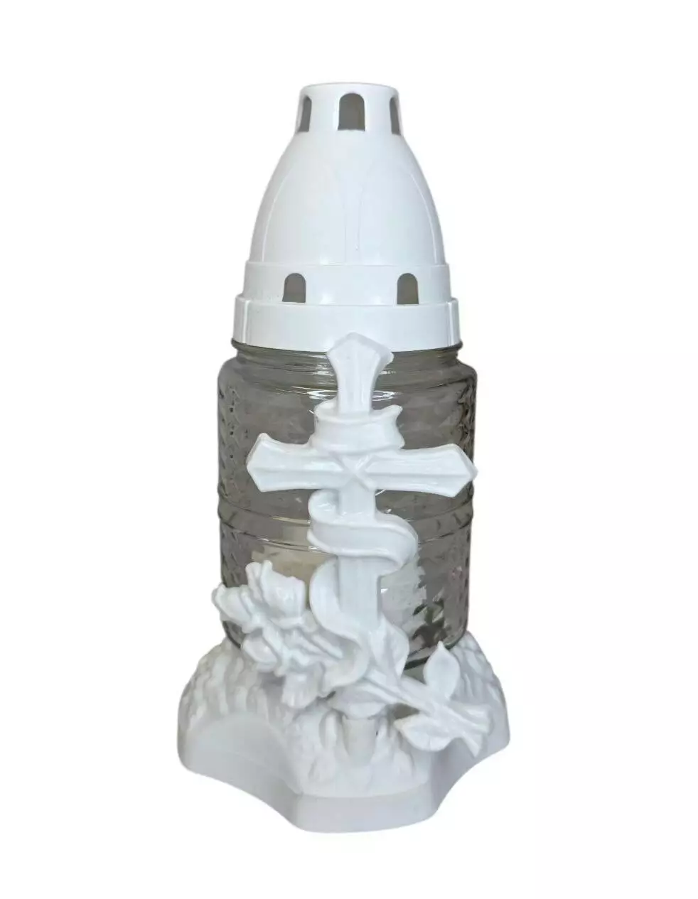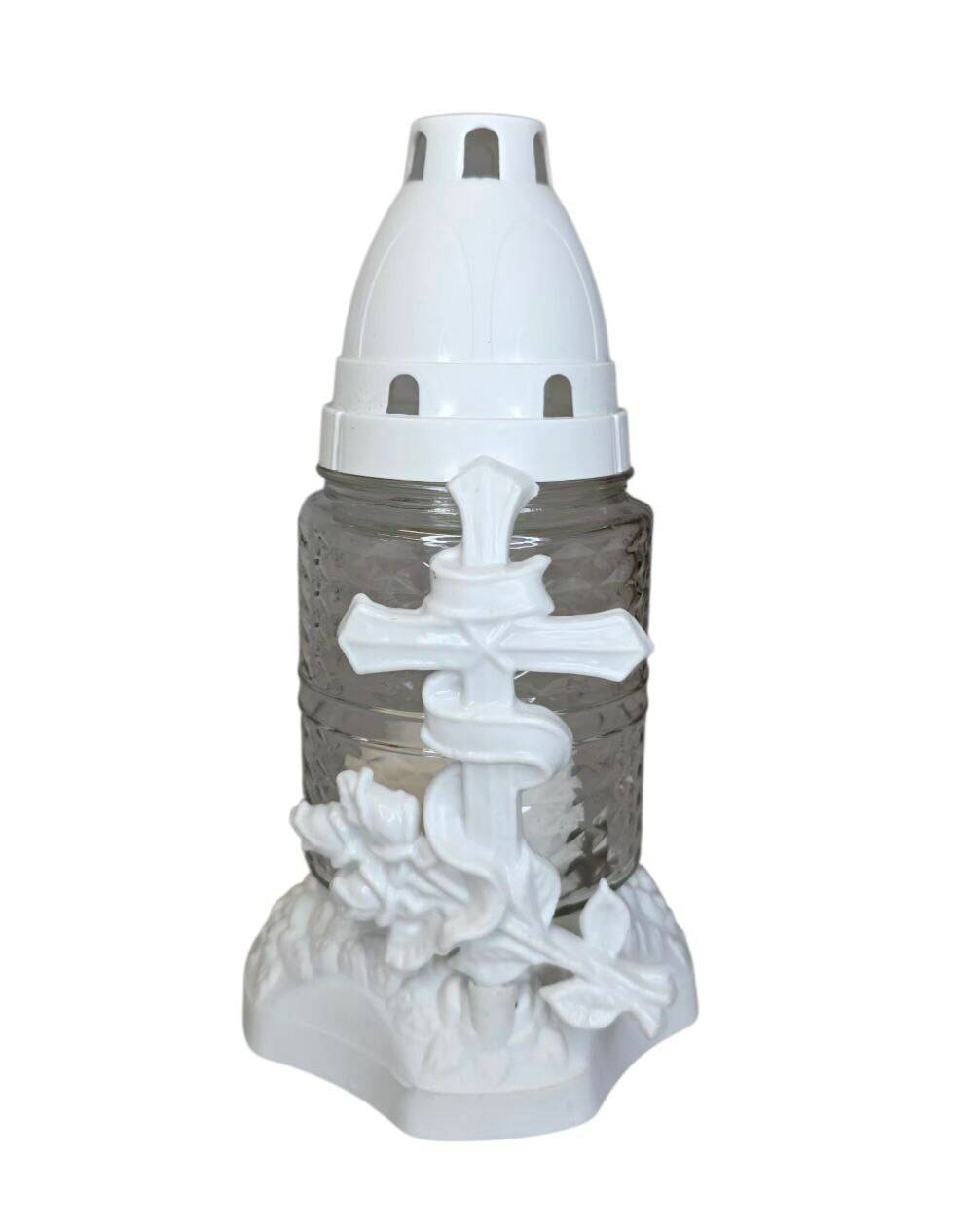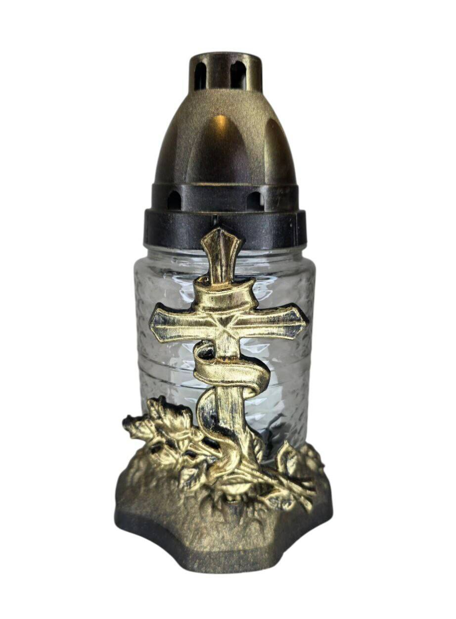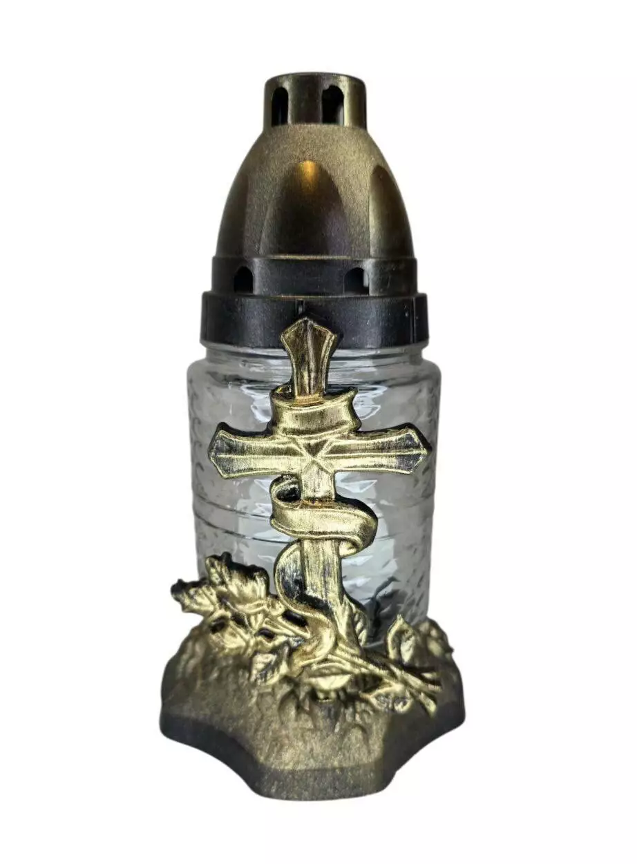 Лампадка виготовлена зі скла, з пластиковою кришечкою та