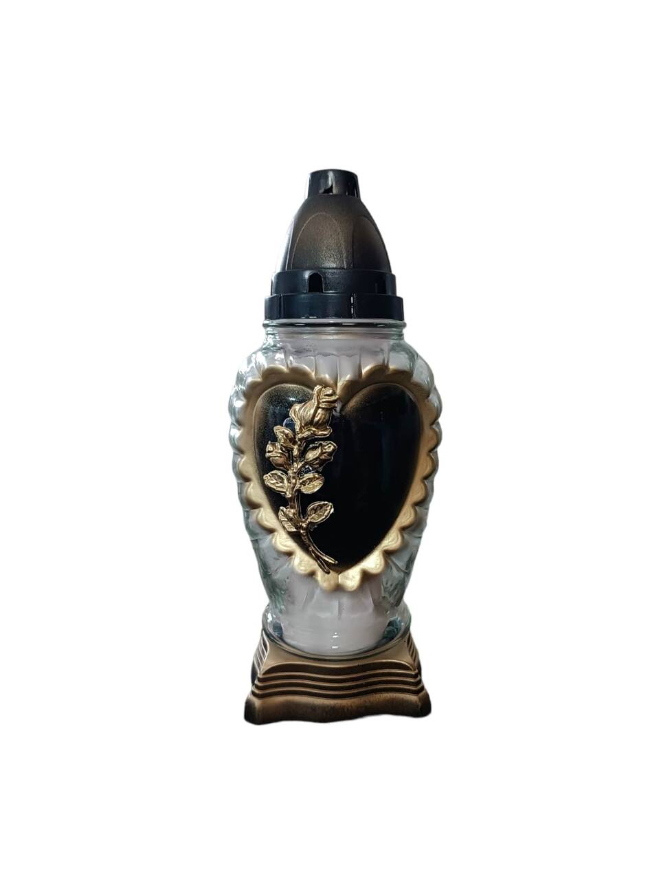 Лампадка сердечко виготовлена зі скла, з пластиковою кришечкою та