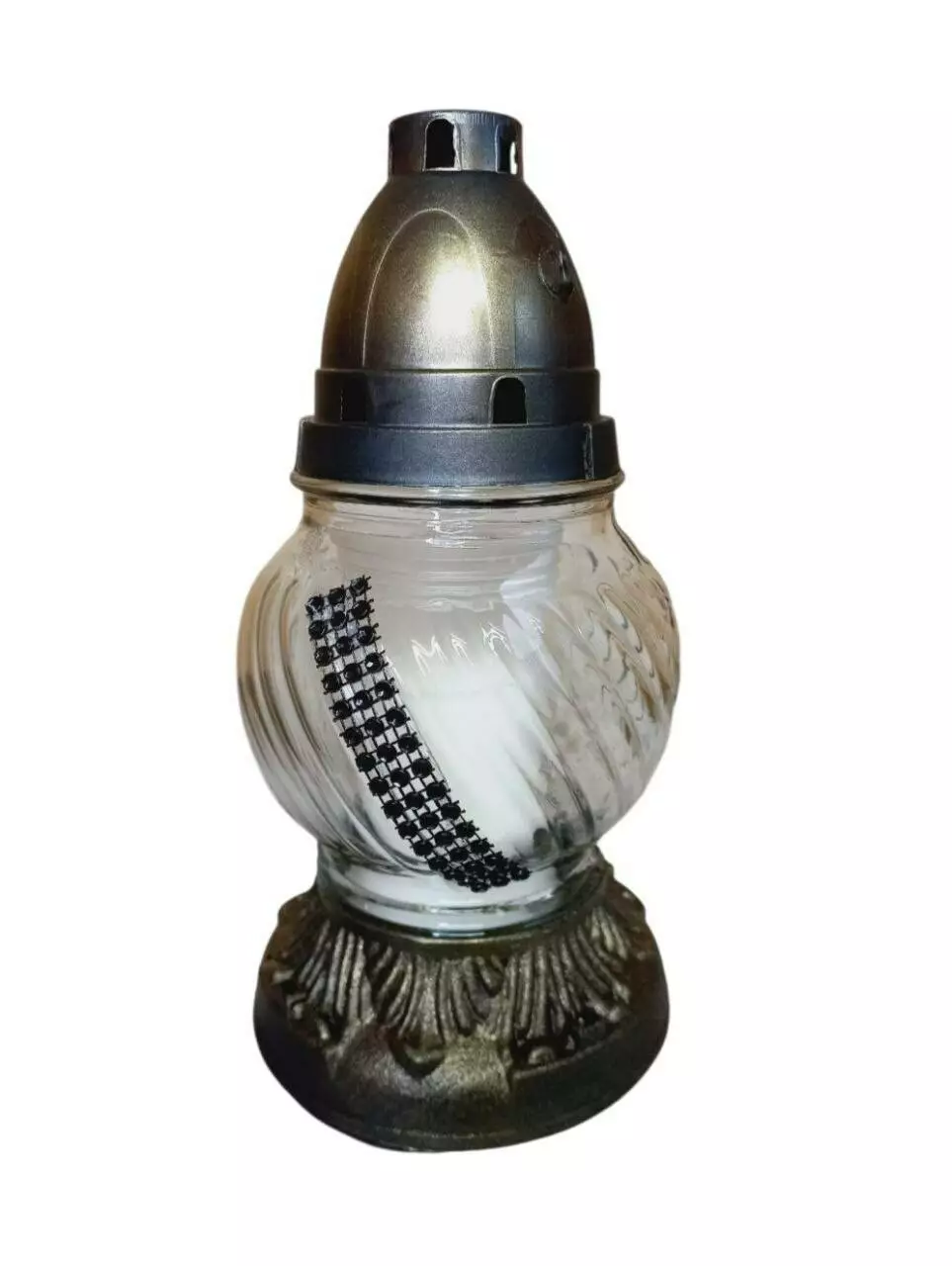 Лампадка виготовлена зі скла, з пластиковою кришечкою та