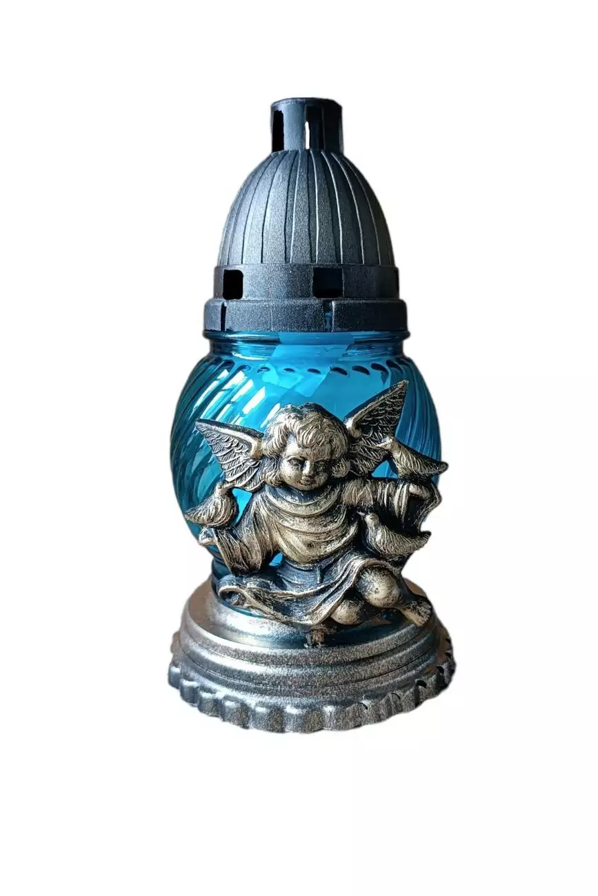 Лампадка виготовлена зі скла, з пластиковою кришечкою та
