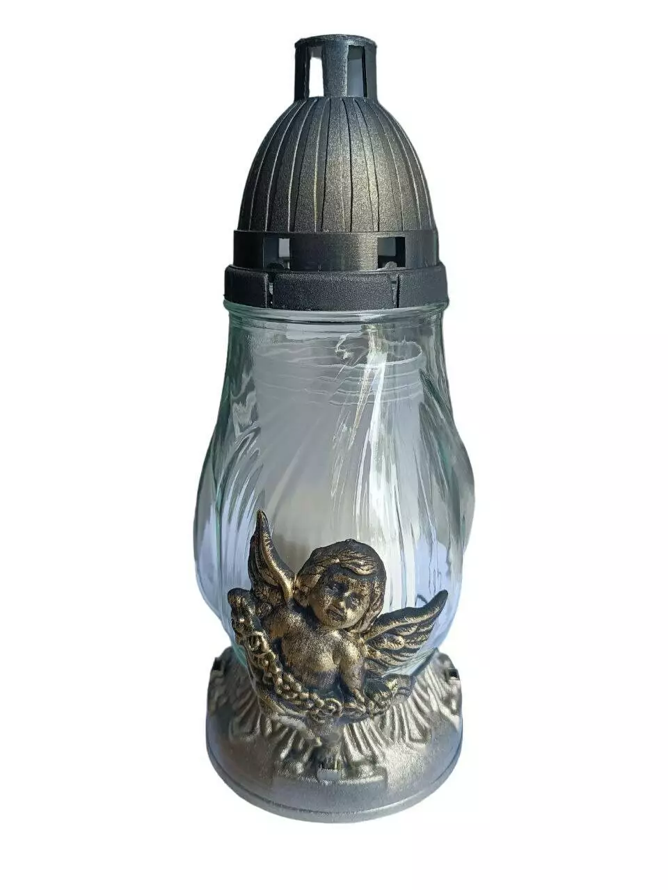 Лампадка виготовлена зі скла, з пластиковою кришечкою та