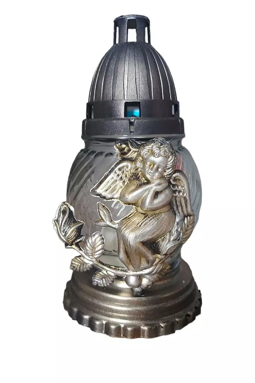 Лампадка янгол білий на троянді виготовлена зі скла, з пластиковою