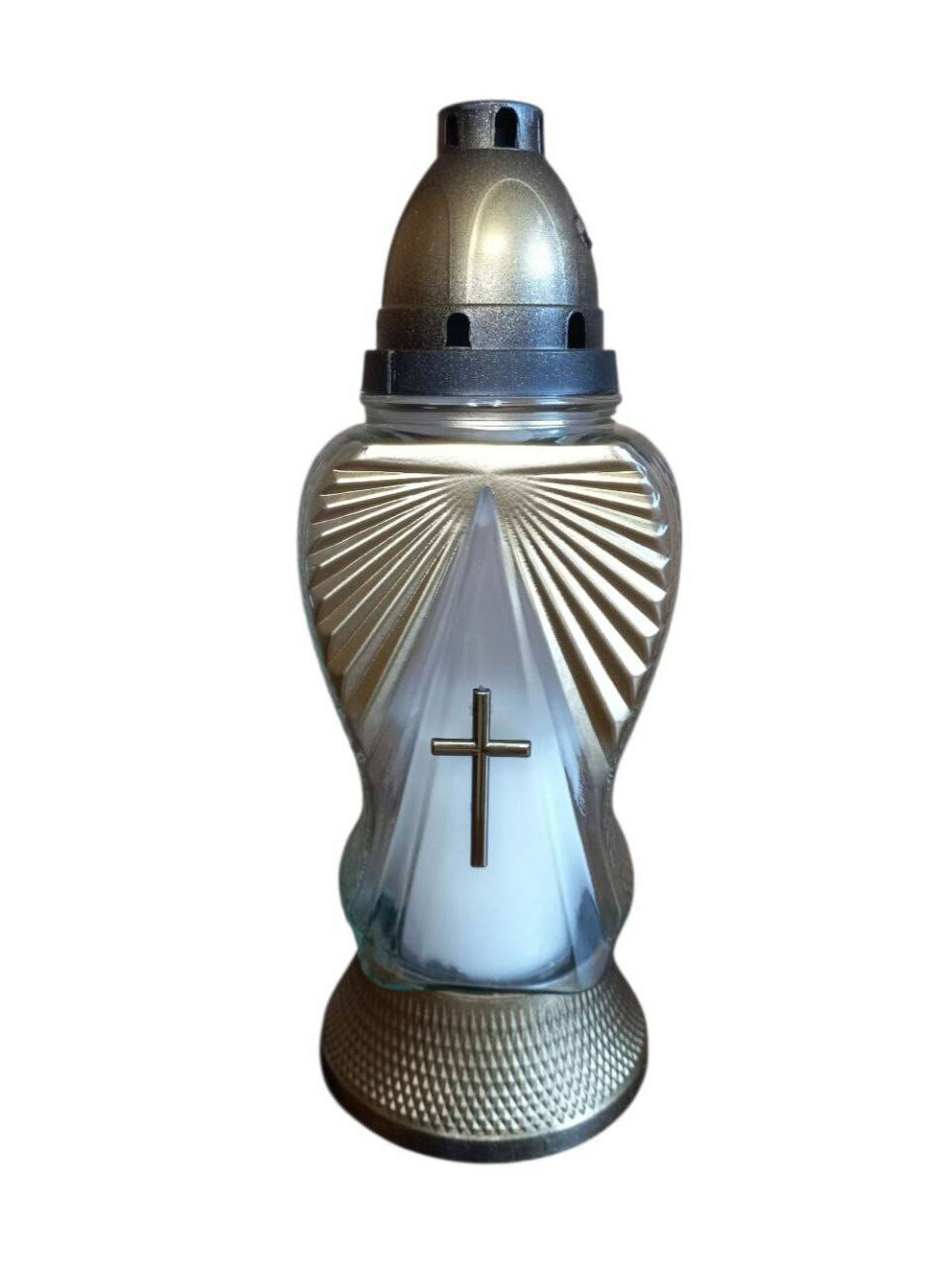 Лампадка золото хрест виготовлена зі скла, з пластиковою кришечкою