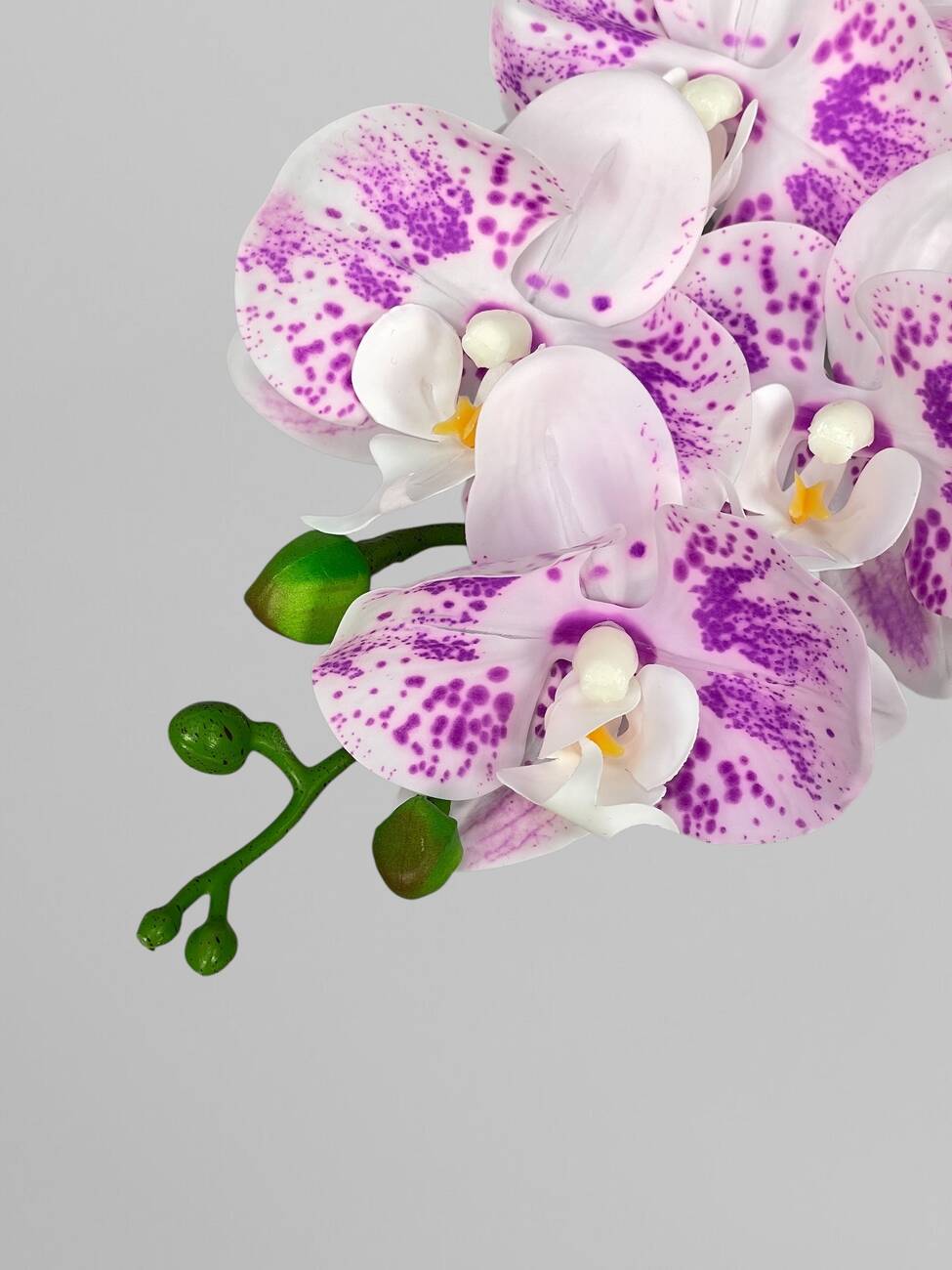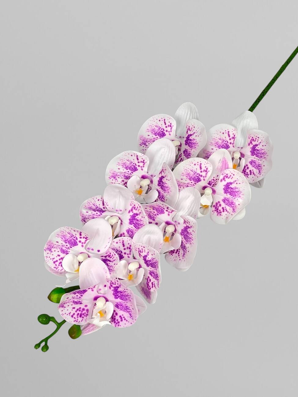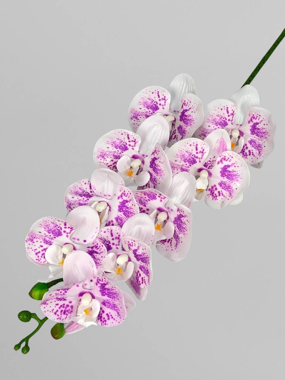 Латексна орхідея Фаленопсіс на 9 суцвіть, білий з фіолетовим принтом, 96 см