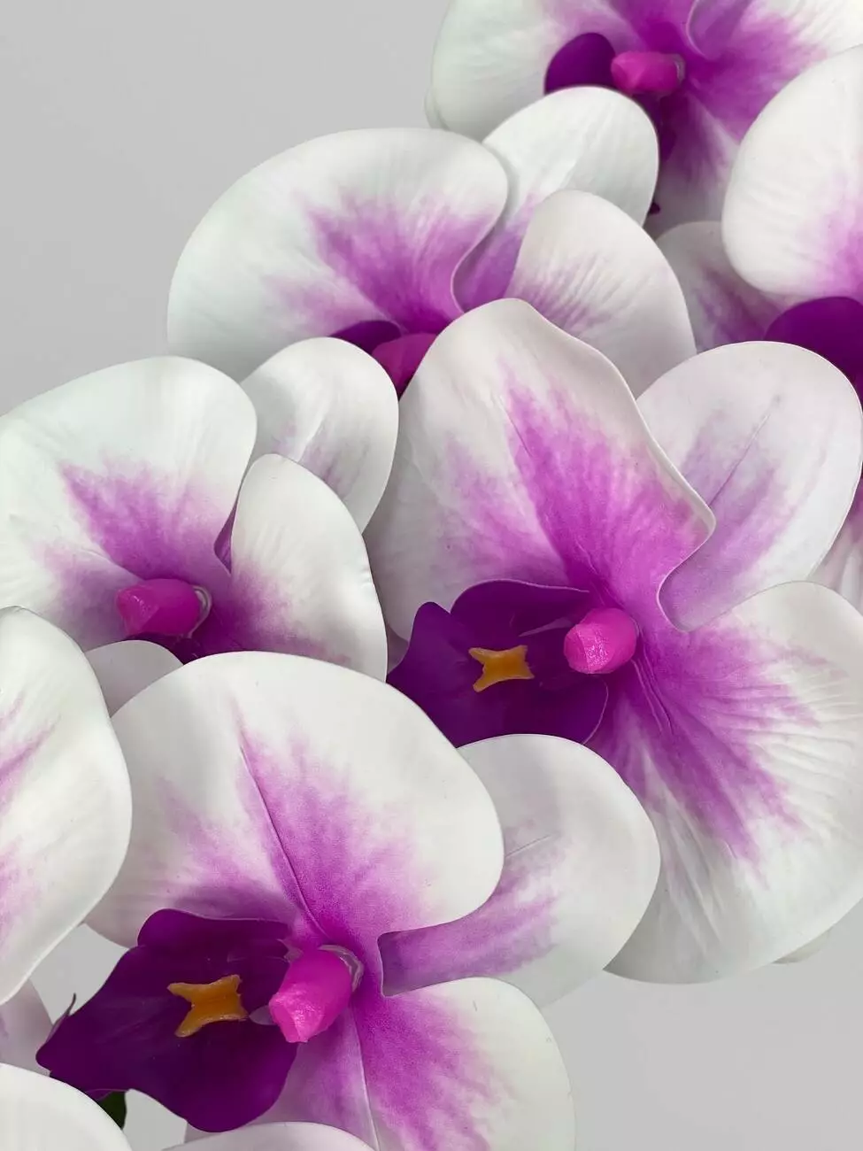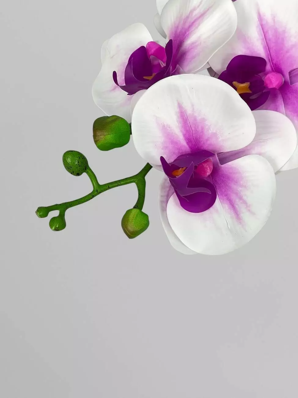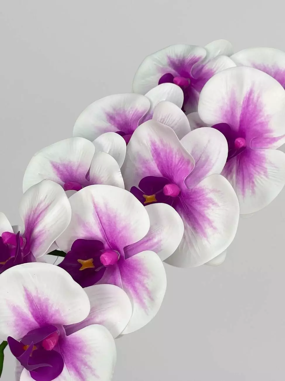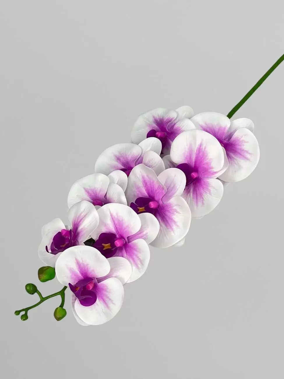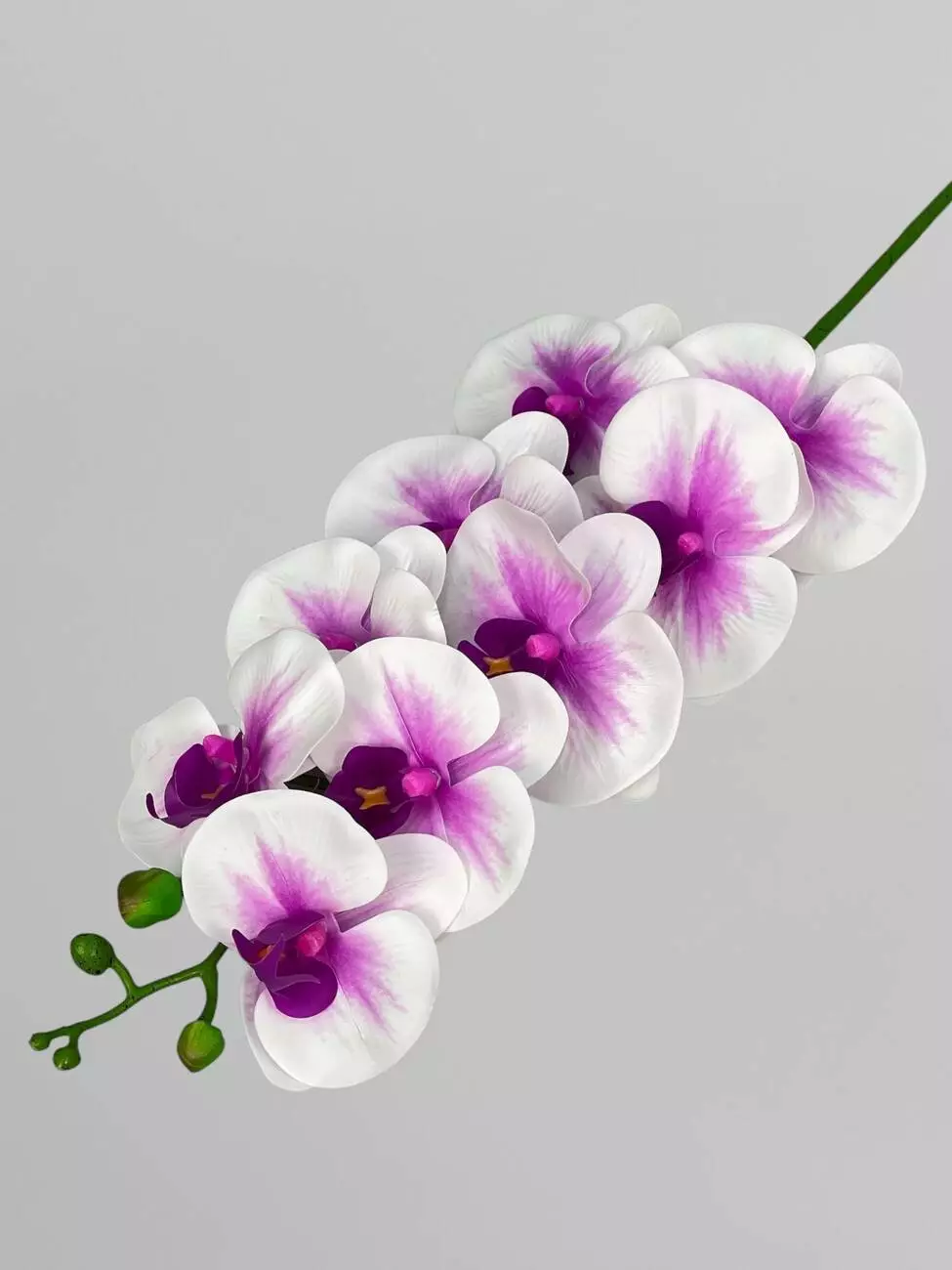 Латексна орхідея Фаленопсіс на 9 суцвіть, білий з фіолетовою серединкою, 96 см