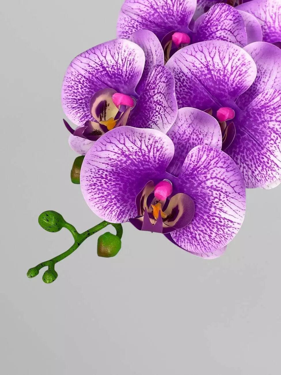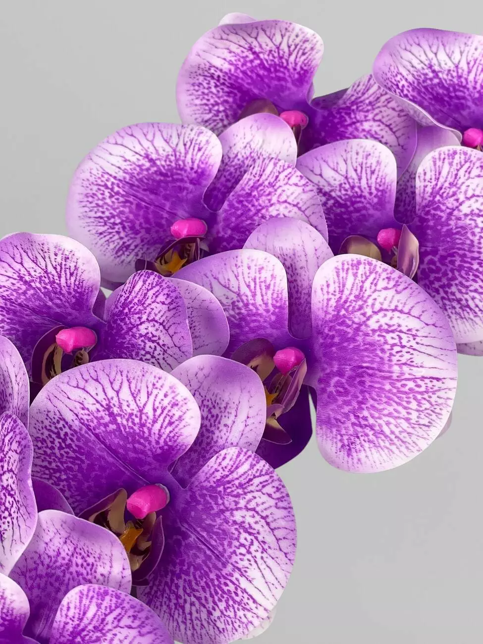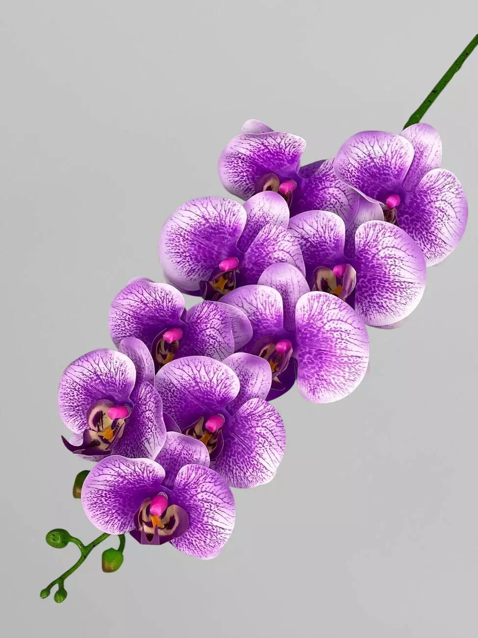 Латексна орхідея Фаленопсіс на 9 суцвіть, бузковий з принтом, 96 см