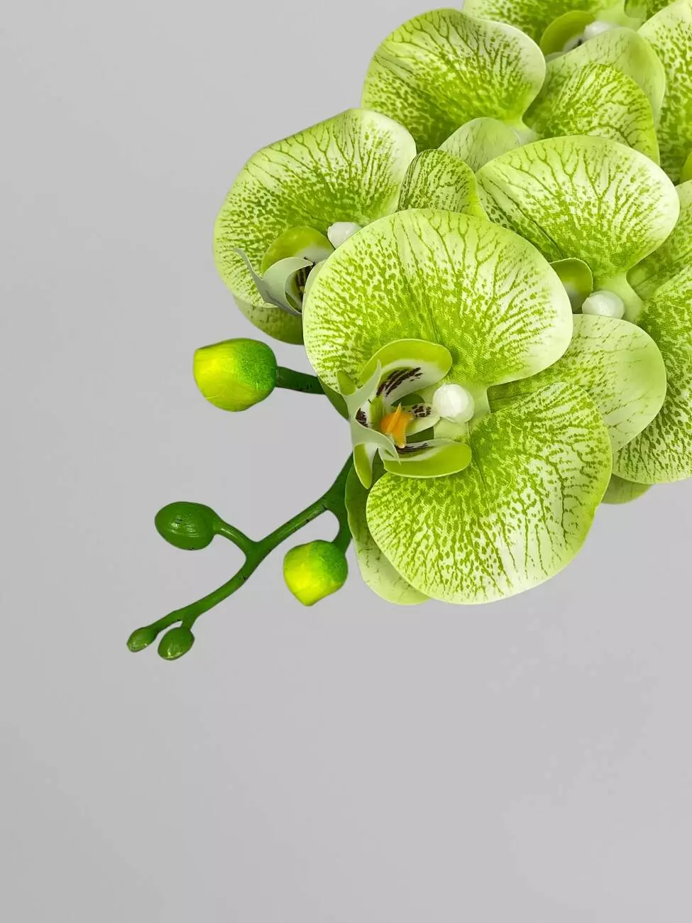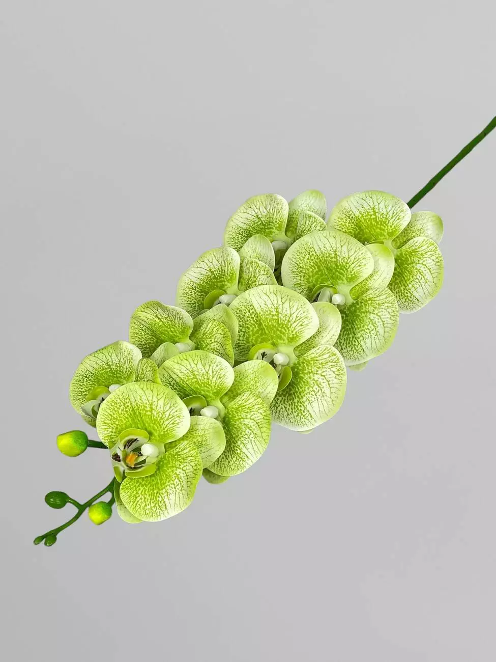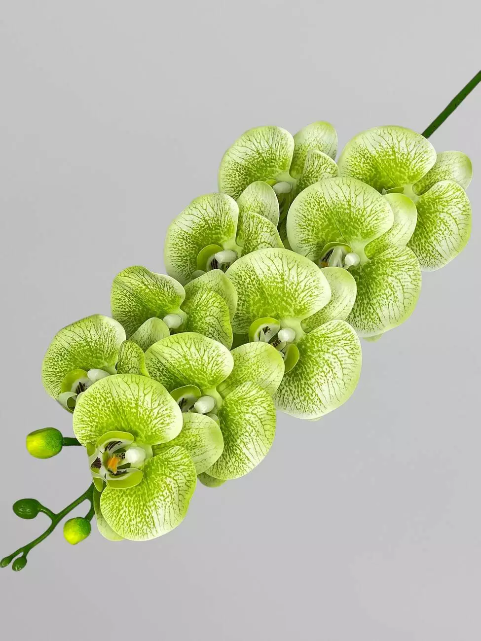 Латексна орхідея Фаленопсіс на 9 суцвіть, салатовий з принтом, 96 см