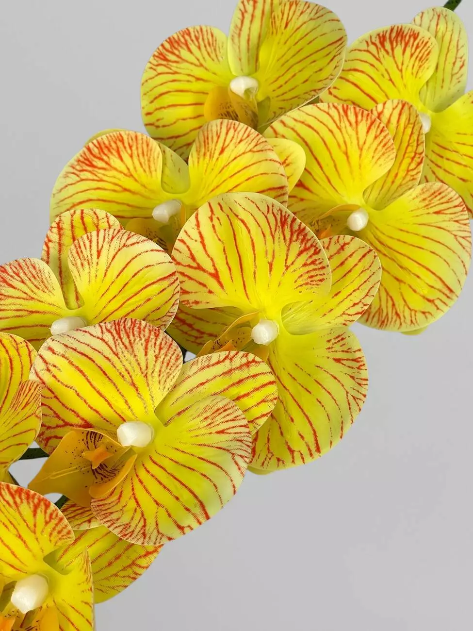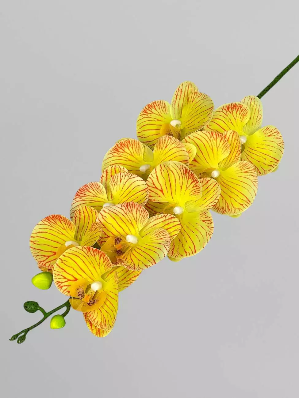 Латексна орхідея Фаленопсіс на 9 суцвіть, жовтий в червону смужку, 96 см