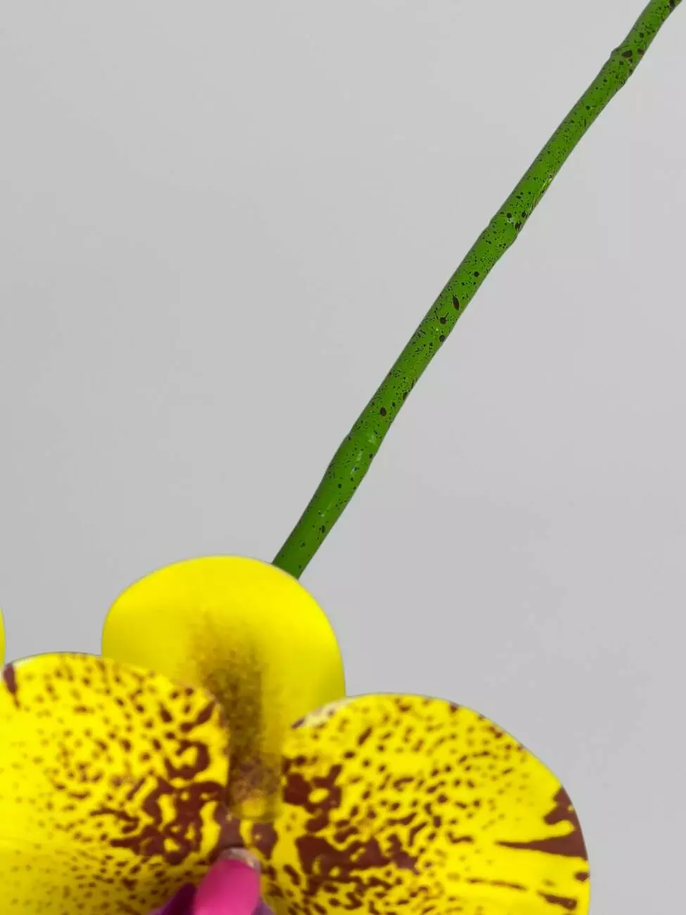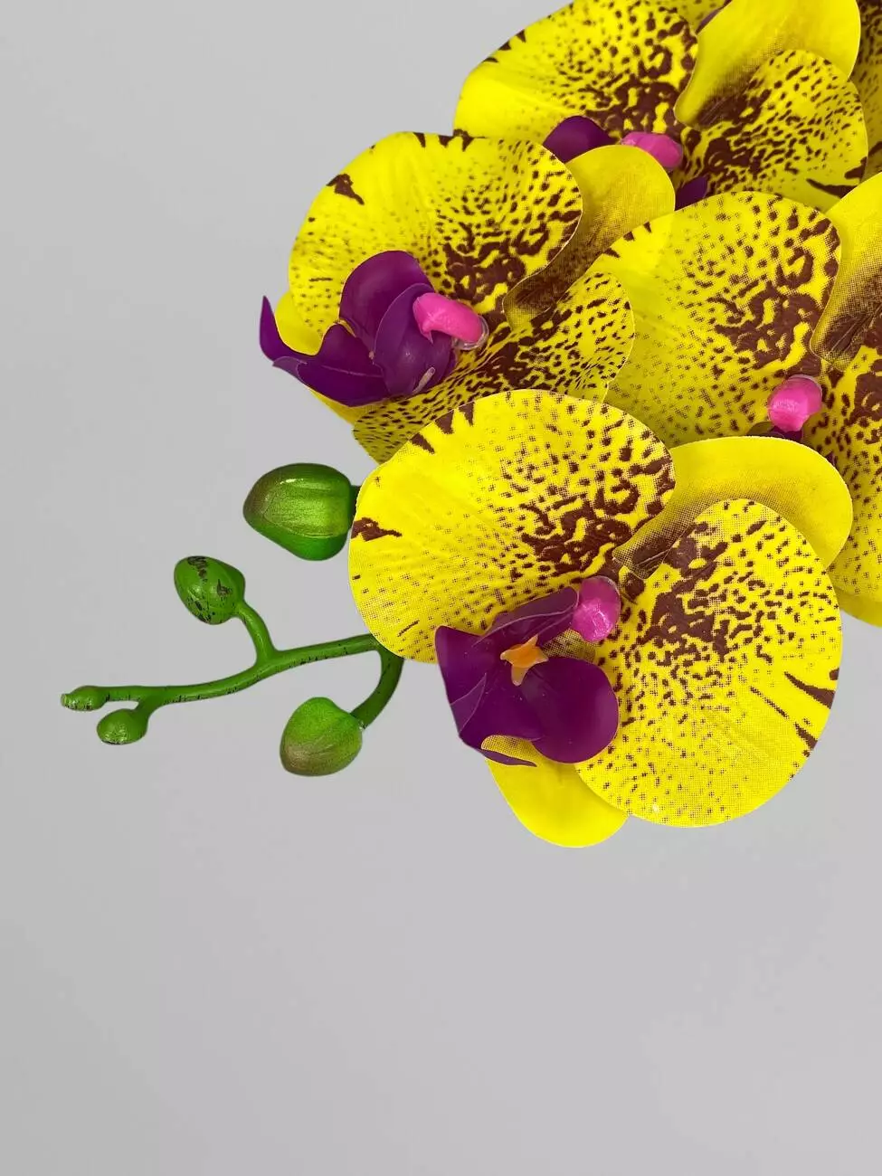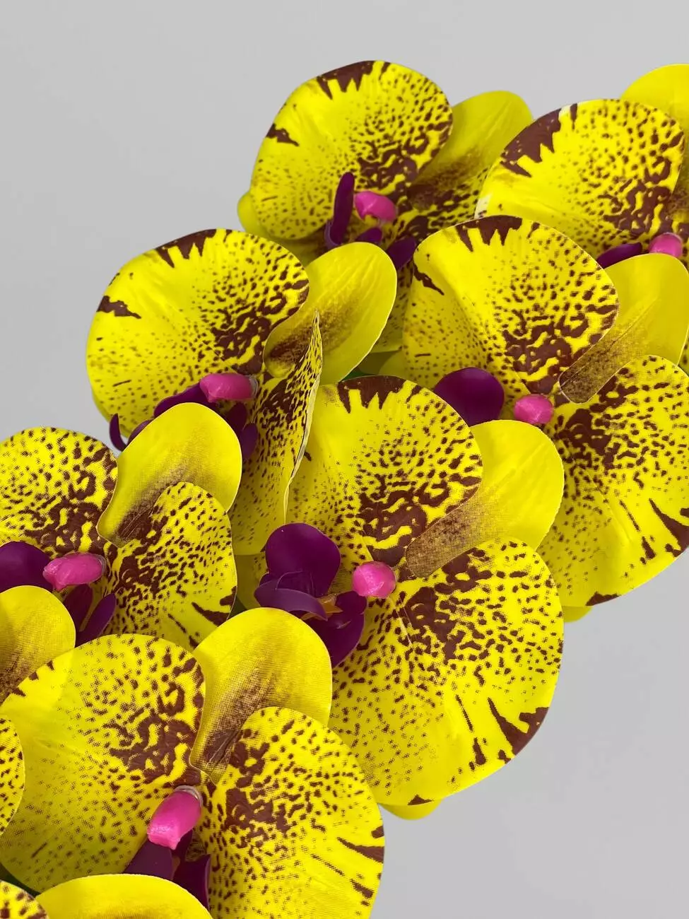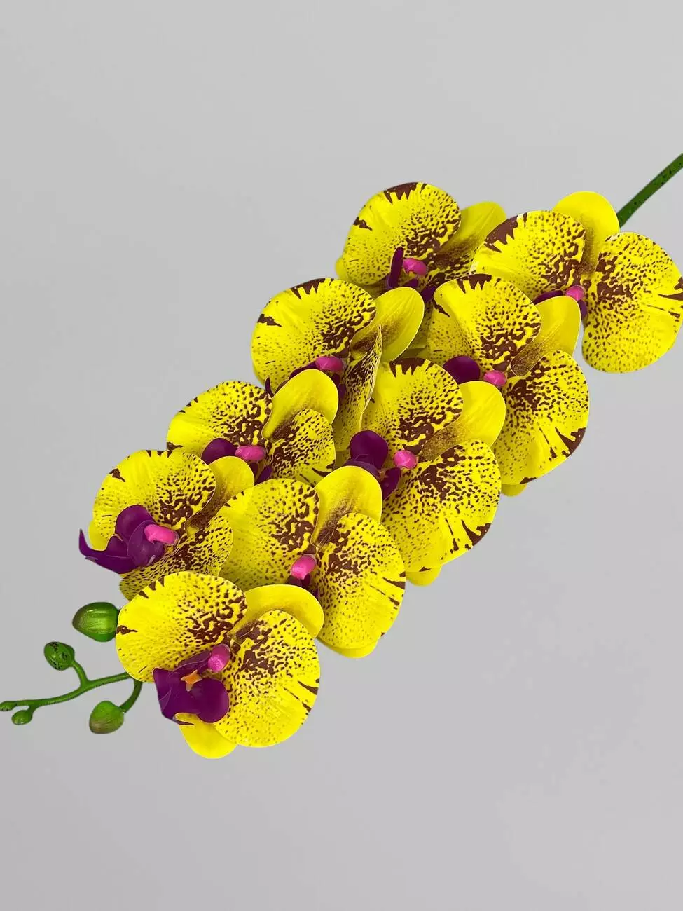 Латексна орхідея Фаленопсіс на 9 суцвіть, жовтий з фіолетовим принтом, 96 см