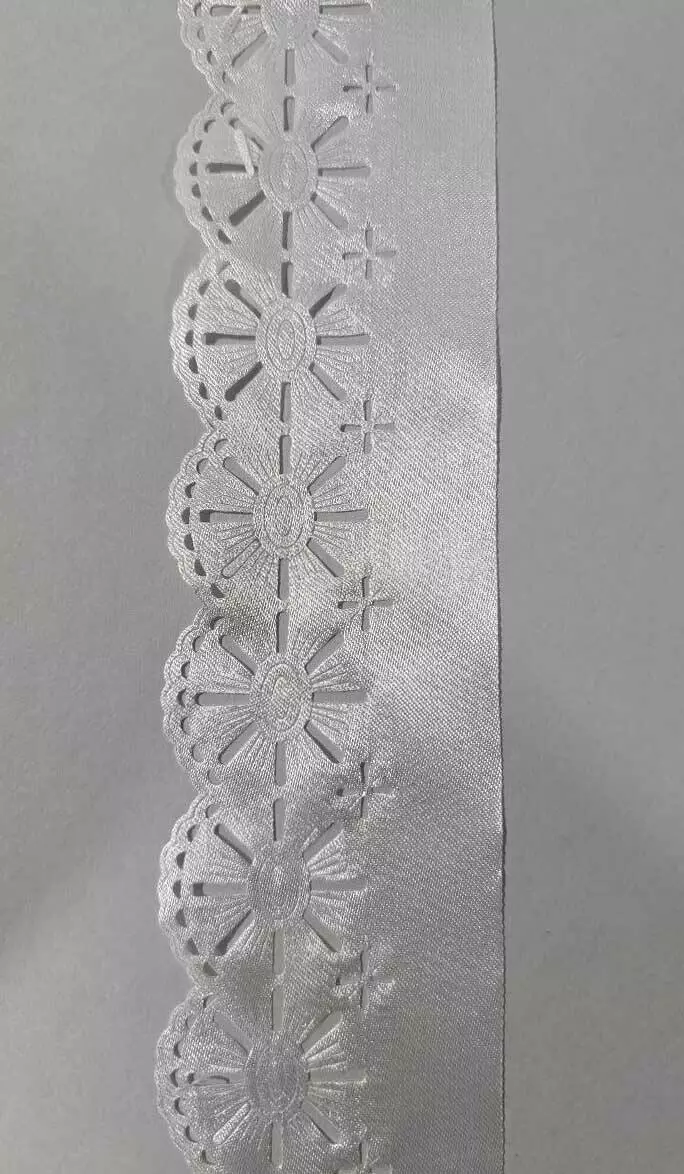 Мереживо атласне вибите ширина 6см довжина в районі 302м, точну
